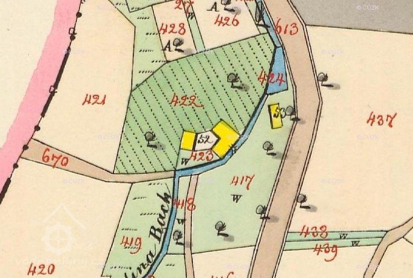 PopisV r. 1930 zde bylo 1 kolo na svrchní vodu, průtok 0,04 m3/s, spád 8,4 m, výkon 3 k.