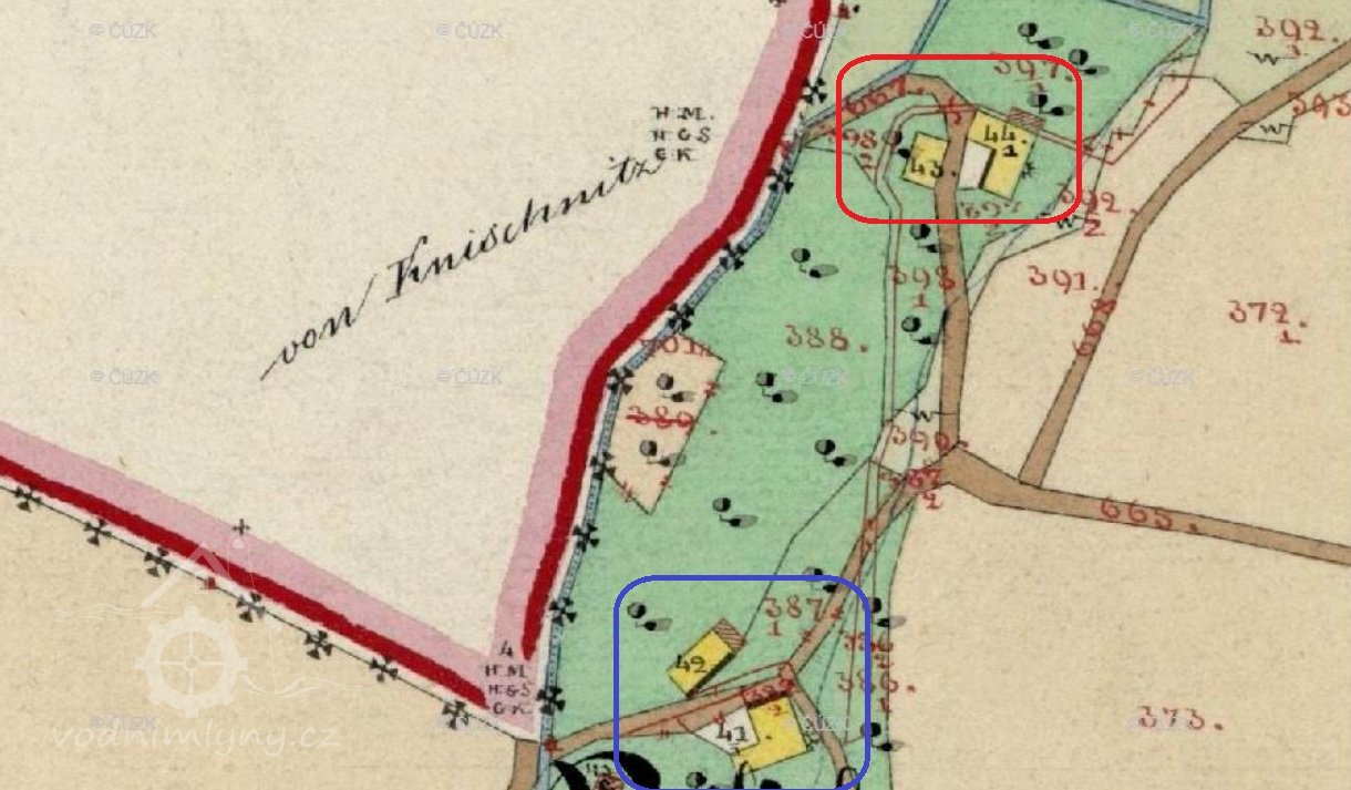 PopisV r. 1930 zde bylo 1 kolo na svrchní vodu, průtok 0,08 m3/s, spád 5 m, výkon 3,5 k.