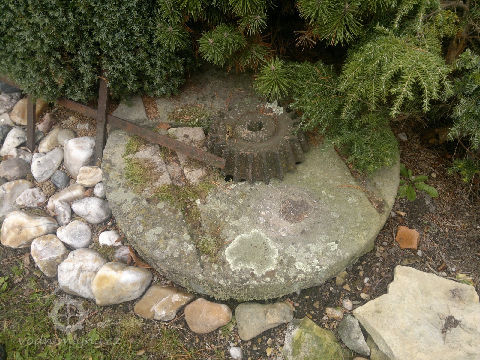 jeden z množství vyřazených mlecích kamenů před mlýnem, 2013, © David Veverka, (Prvky na obrázku: mlecí kámen)