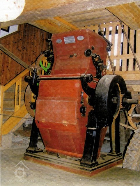 vzácná mlecí stolice s rýhovanými válci a dřevěnou skříní, vyrobená po r. 1882 od firmy J. Prokop - Pardubice, 2013, David Veverka, Prvky na obrázku: válcová stolice