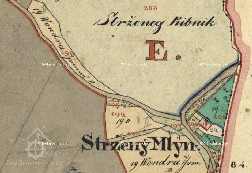 Zachycen v odhadu statku Rtišovice ze dne 24. 5. 1713 jako mlýn s jedním složením a stoupou, při něm pila.