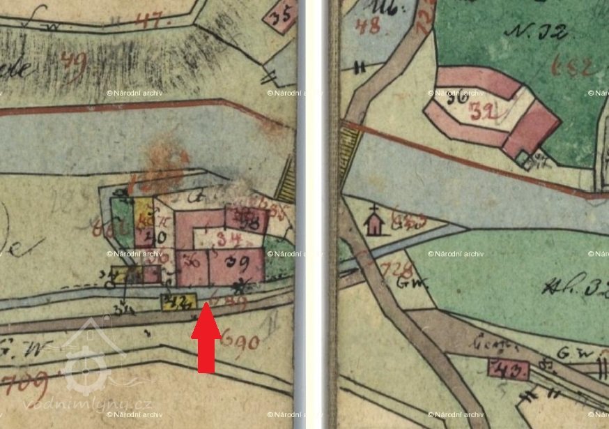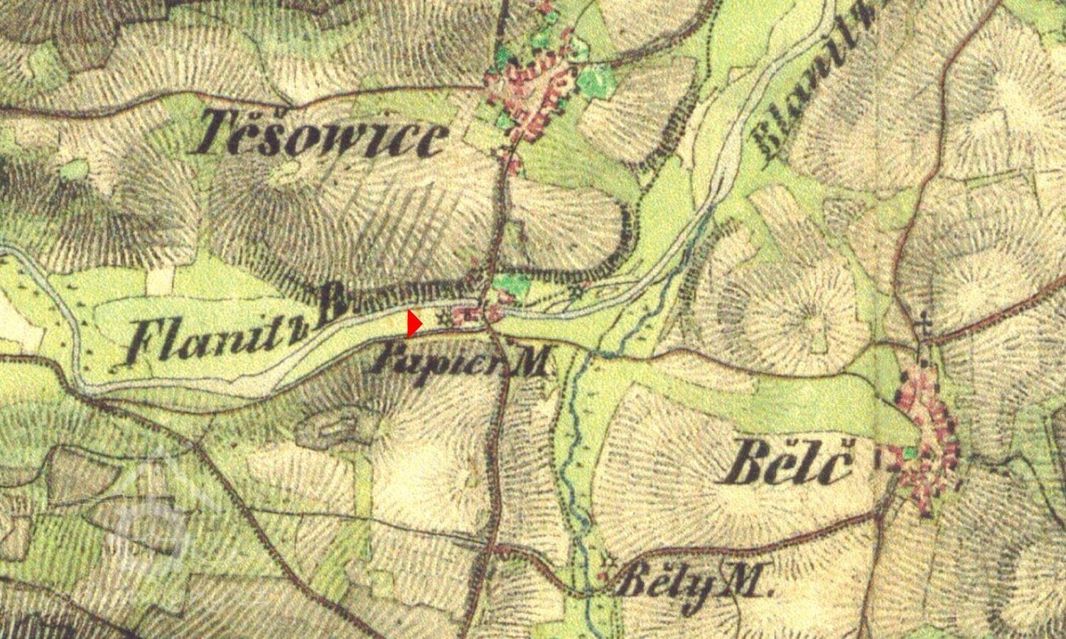 červenec 1821 od obce za 100 zl. odkoupeny pozemky ku stavbě obytné budovy, stáje a sýpky pro papírnu