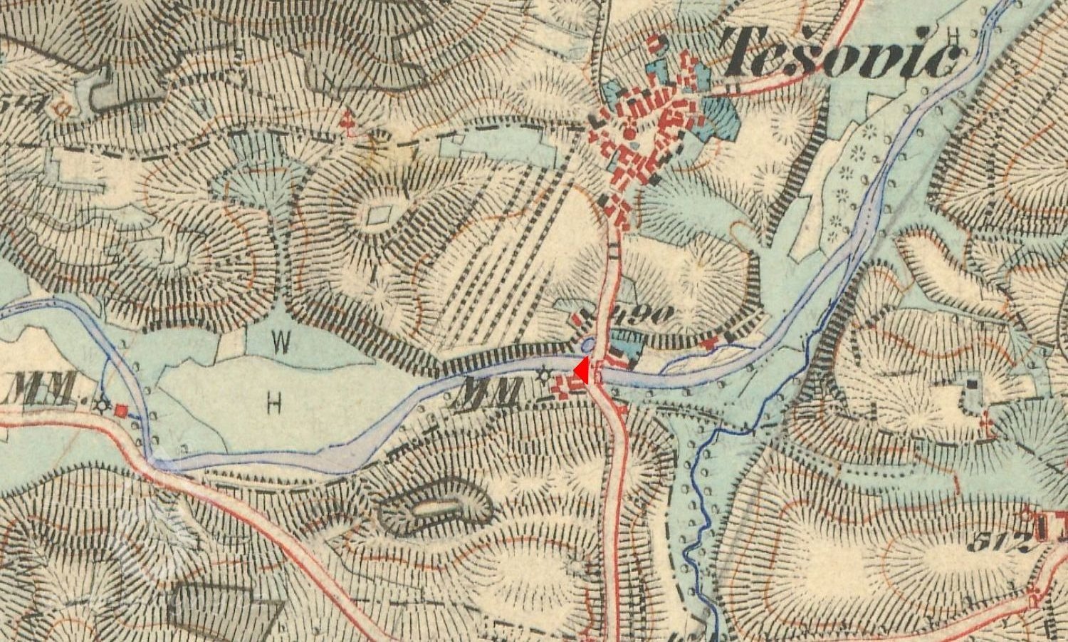 1782 prachatický panský hospodářský úřad a těšovická obec uzavřely smlouvu o zřízení česlic u mlýna a dvou skladů dřeva na obecní pastvině pro potřebu panství