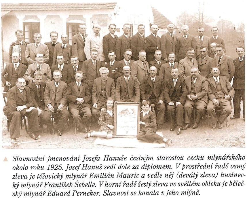 1780 Lukáš Hanuš (1751-1811) s Marií (1761-1809), dc. Jana Peška, sedláka z Těšovic čp. 24, 1809 vstoupil do mlynářského cechu v Husinci