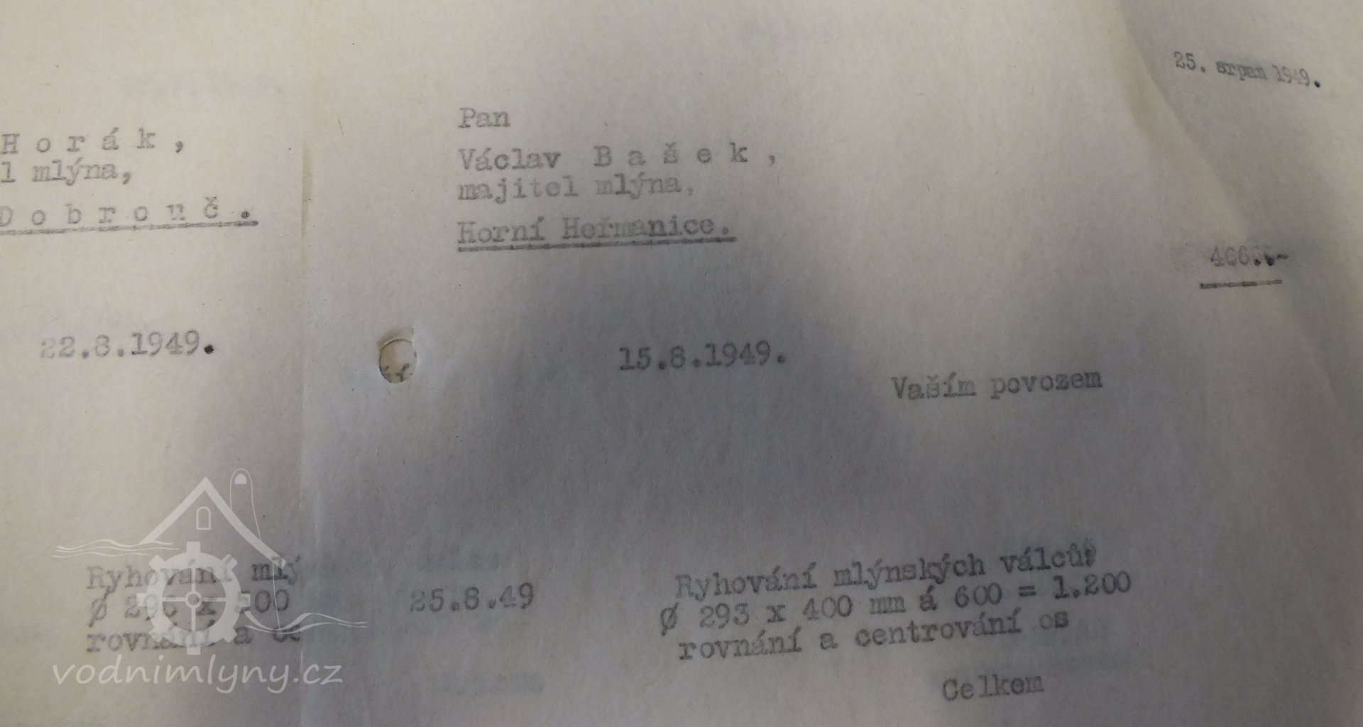 1930 Václav Bašek (mlýn je v Seznamu uveden s čp. 103)