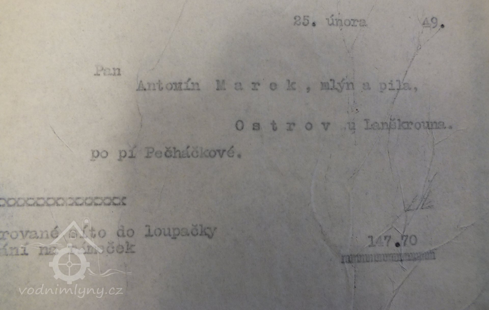 1651 Soupis poddaných podle víry: mlynář a sedlák Jan Fritčer (40 let), manželka Anna (42), syn Martin (18), dcera Kateřina (16), všichni poddaní katolíci