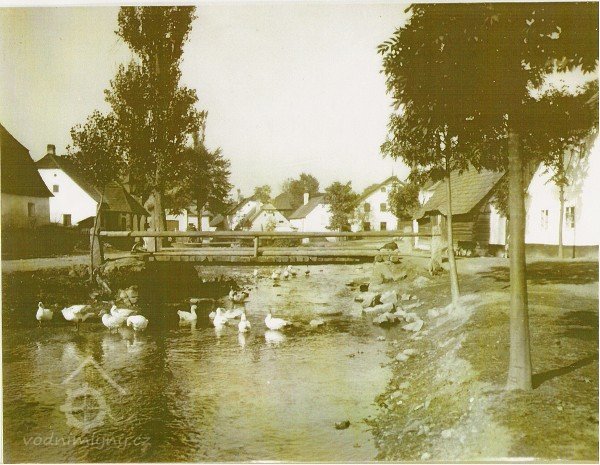 text. „Mlýn č.p.8 v Hybrálci leží na potoce Smrčenském, bezprostředně pod hrází rybníka