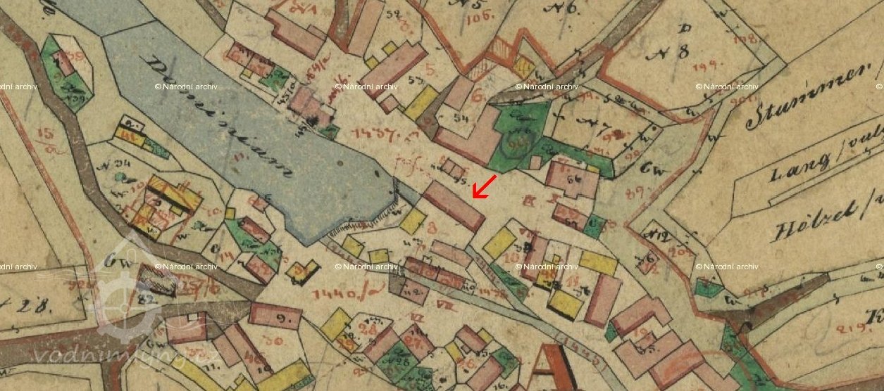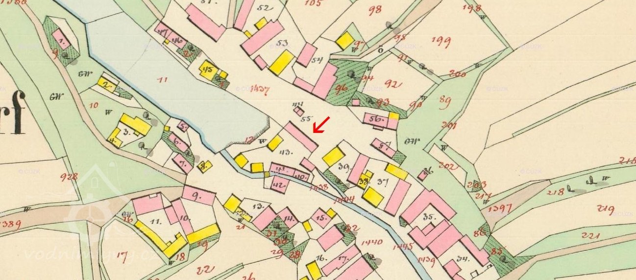cm vysokými. Z rybníka čís.kat.11 přivádí se voda na vodní kolo na vrchní vodu dřevěnými