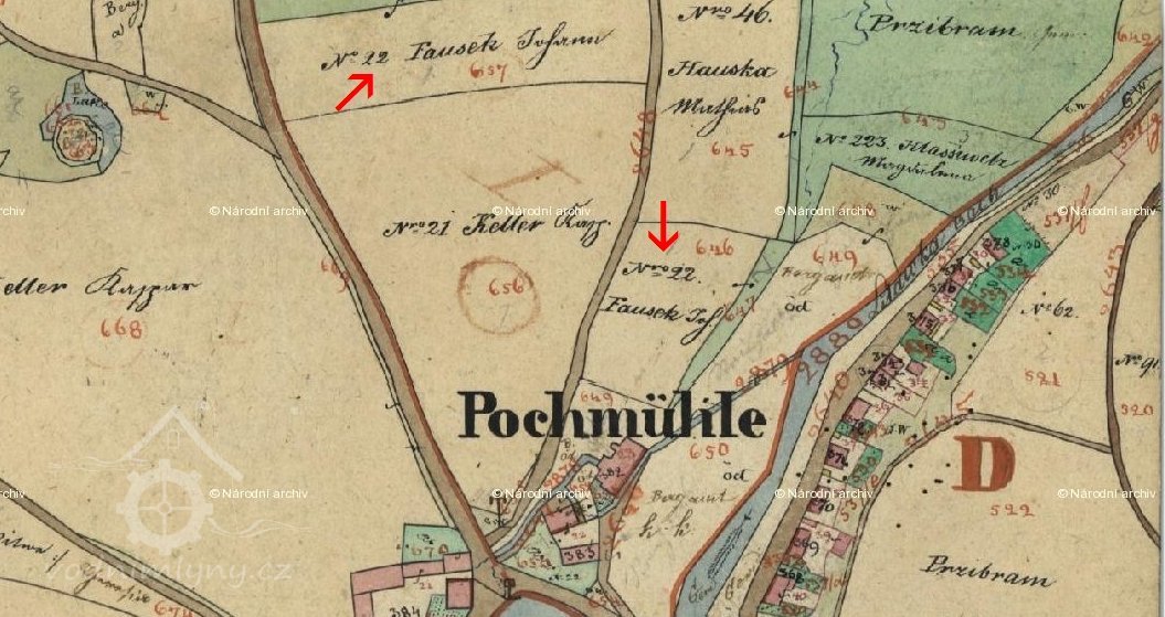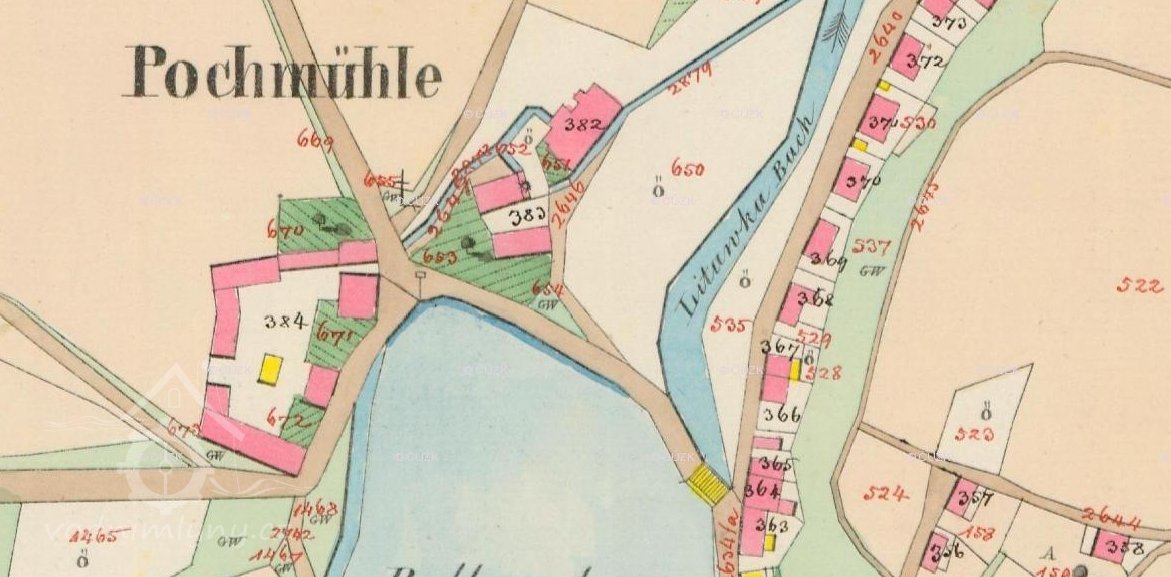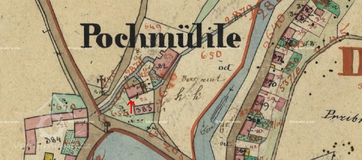 - v roce 1839 je na Indikační skice stoupa (Pochmühle), majitel Johann Fousek, viz ikonografie. (RŠ)