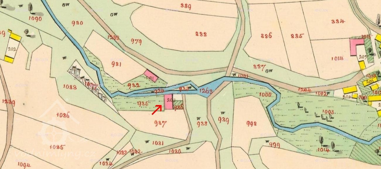 V roce 1930 mlýn patřil Josefu Kupcovi. Podle historické fotografie byla u mlýna pekárna.