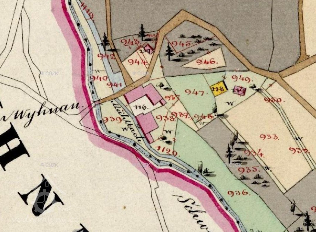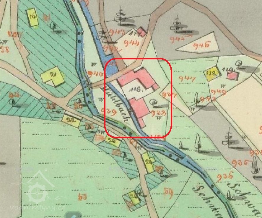 Vodní knihy zde v roce 1913 zaznamenává: „Mlýn sám se skládá ze dvou složení, i dále samostatné vodní kolo k pohonu pily .“