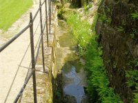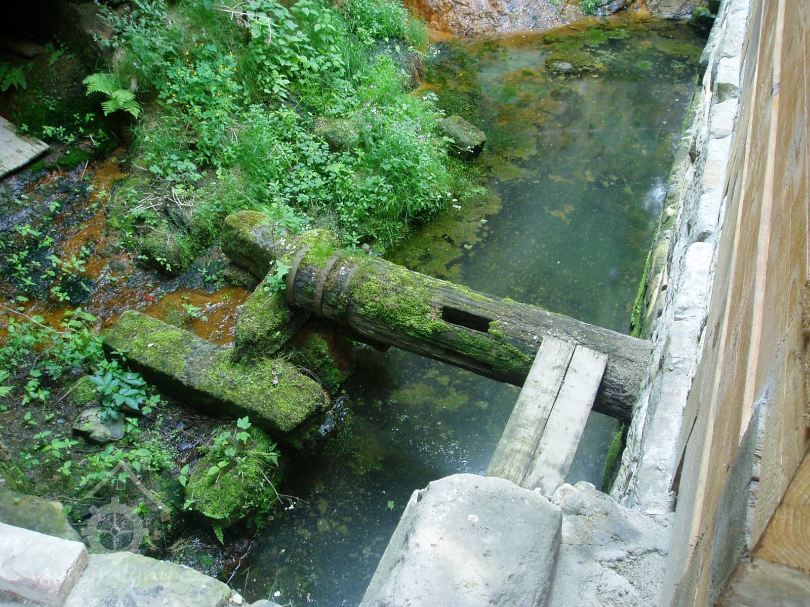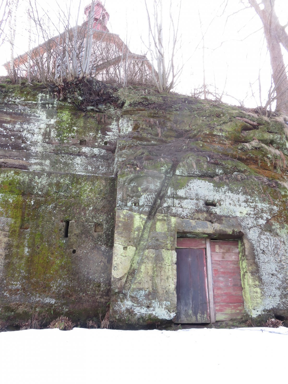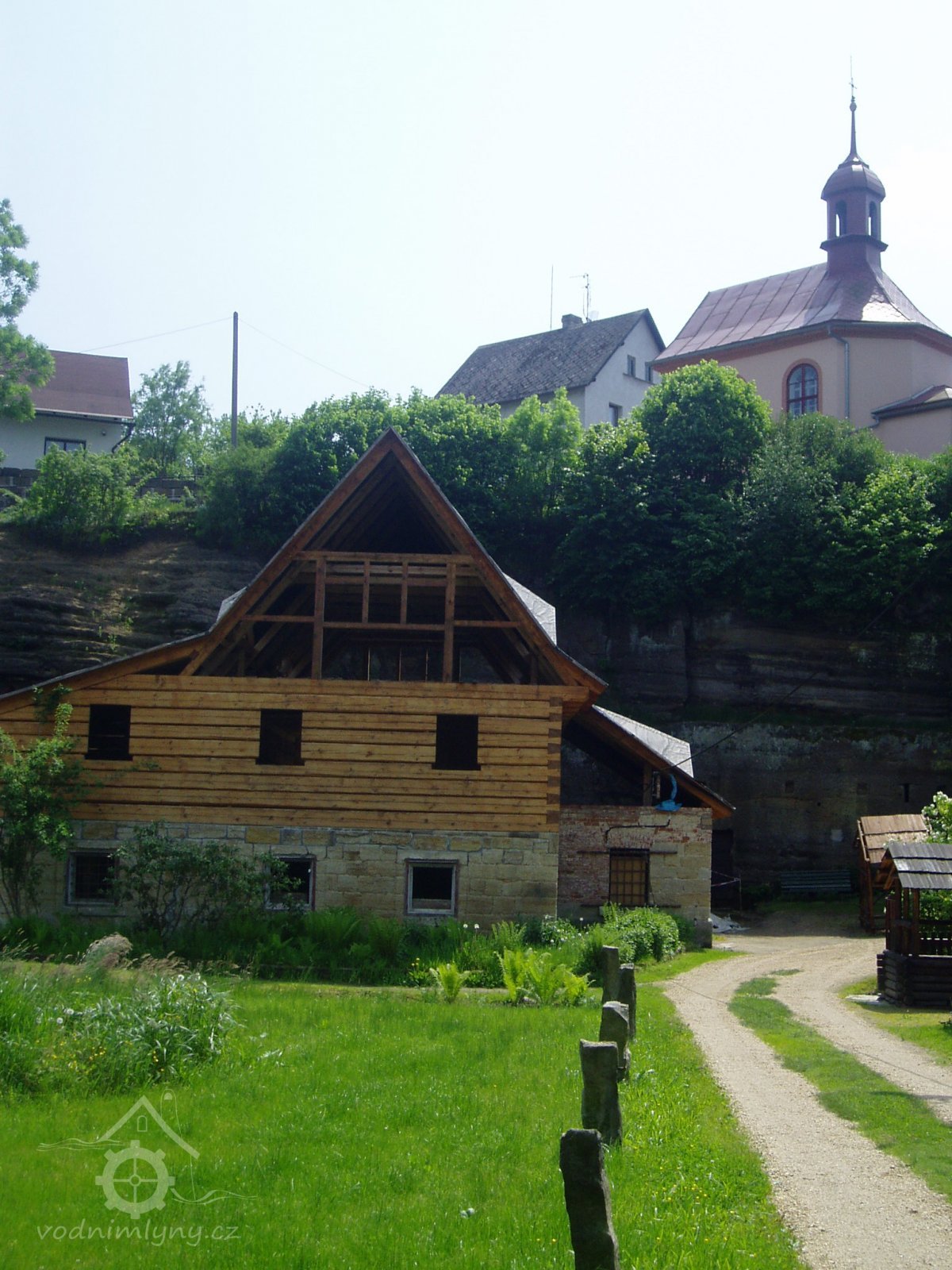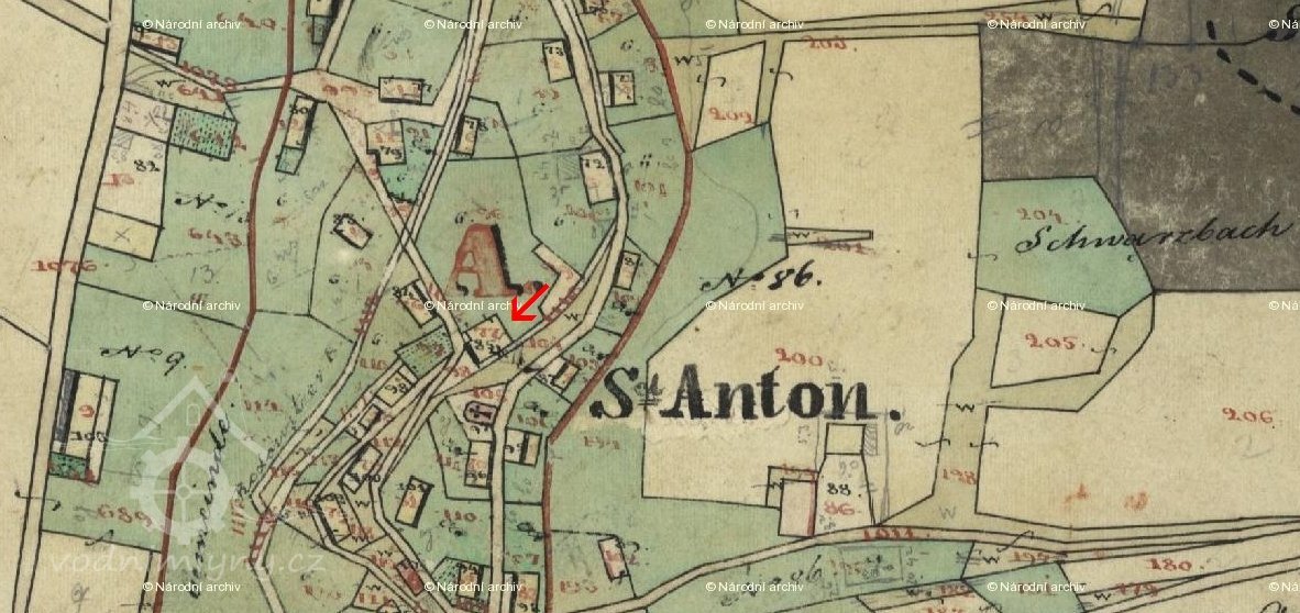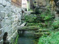 Vlevo od okna je dochována datace 1701, opakující se nad náhonem před mlýnem spolu s dalšími mladšími letopočty. V čelní stěně skalního masivu ústí náhon vedený štolou a následně otevřeným pískovcovým korytem mezi patou skalní stráně a místní komunikací až ke mlýnu pod kaplí sv. Antonína. Lednice s dochovanou hřídelí vodního kola na horní vodu je vymezena vysokou odlámanou stěnou a budovou mlýna.