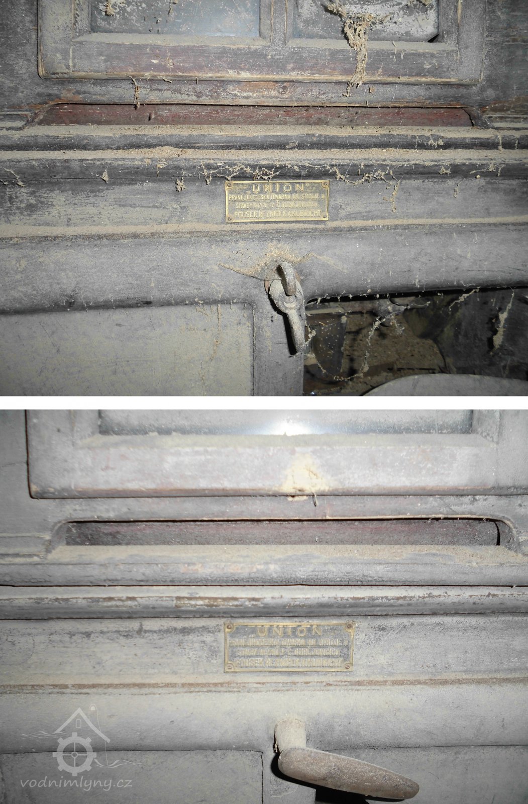 štítky válcových stolic, 2013, © Veselý, (Prvky na obrázku: značka výrobce na technologickém vybavení)