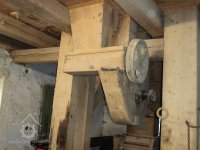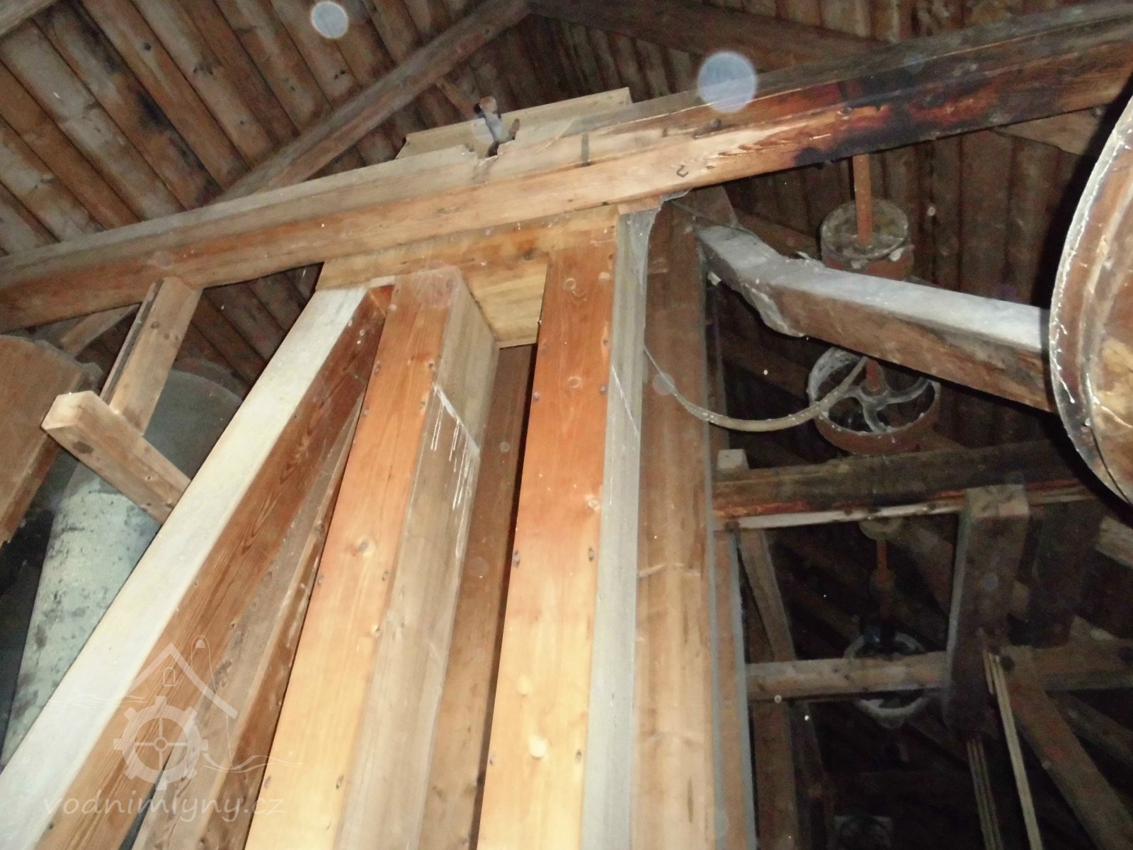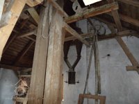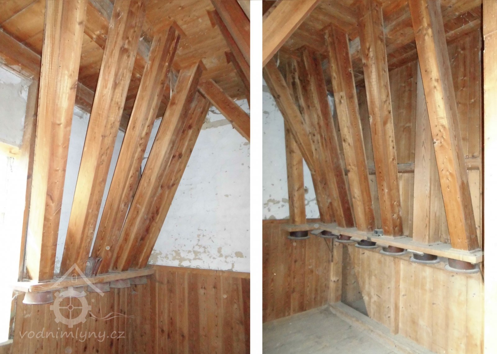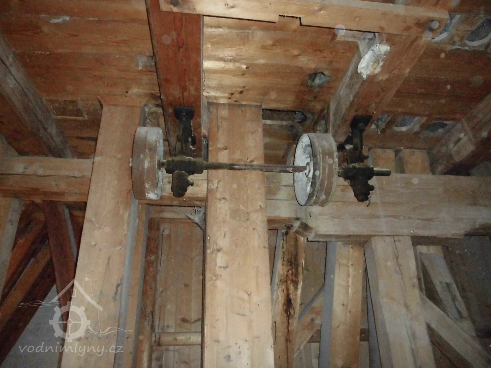 transmise v podstřeší, 2013, © Veselý, (Prvky na obrázku: transmise, řemenice, převody)