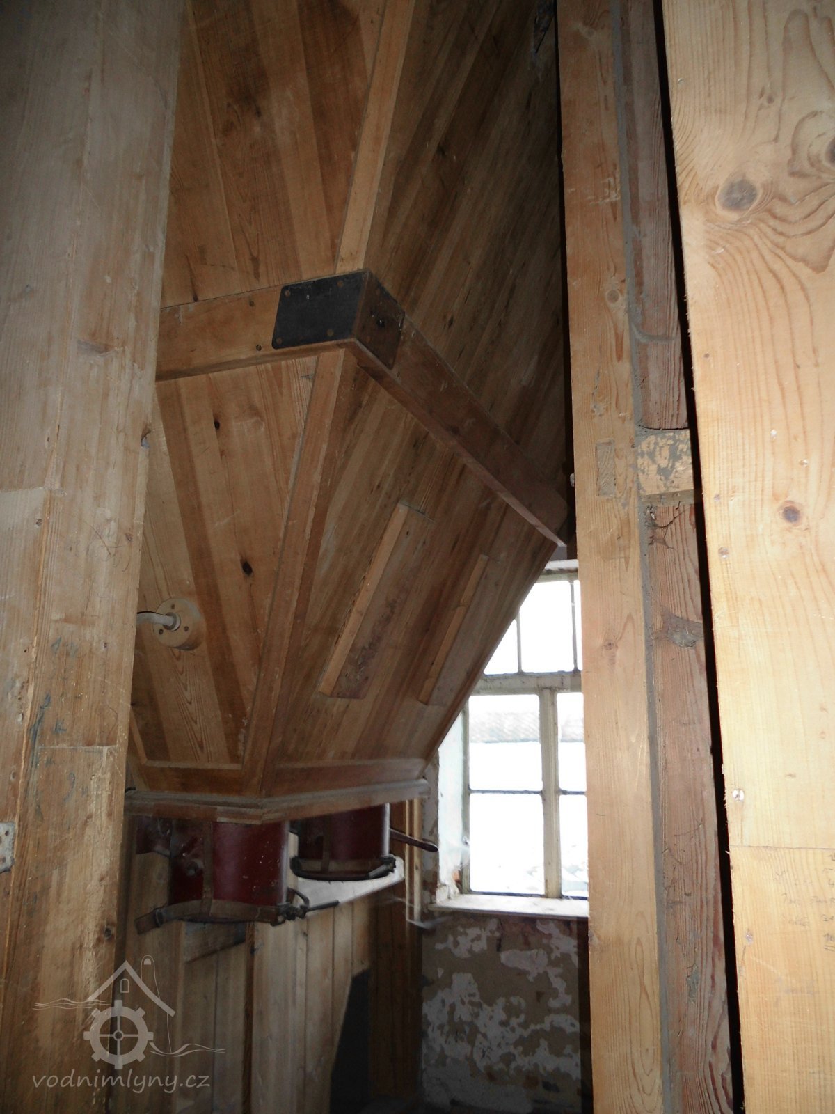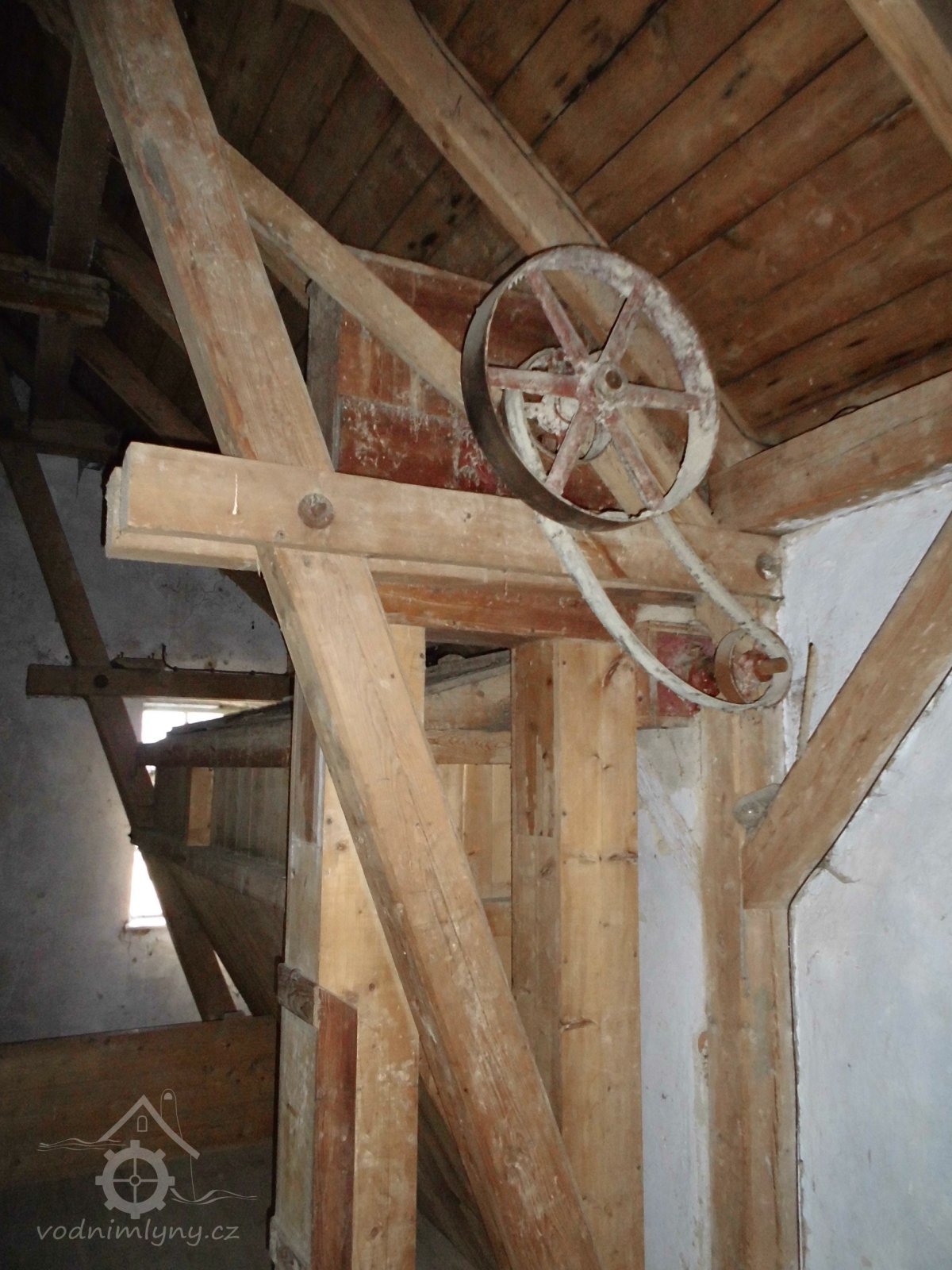 transmise v podstřeší, 2013, © Veselý, (Prvky na obrázku: transmise, řemenice, převody, výtahy a dopravníky)