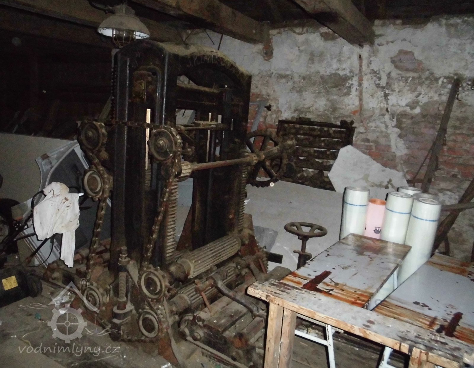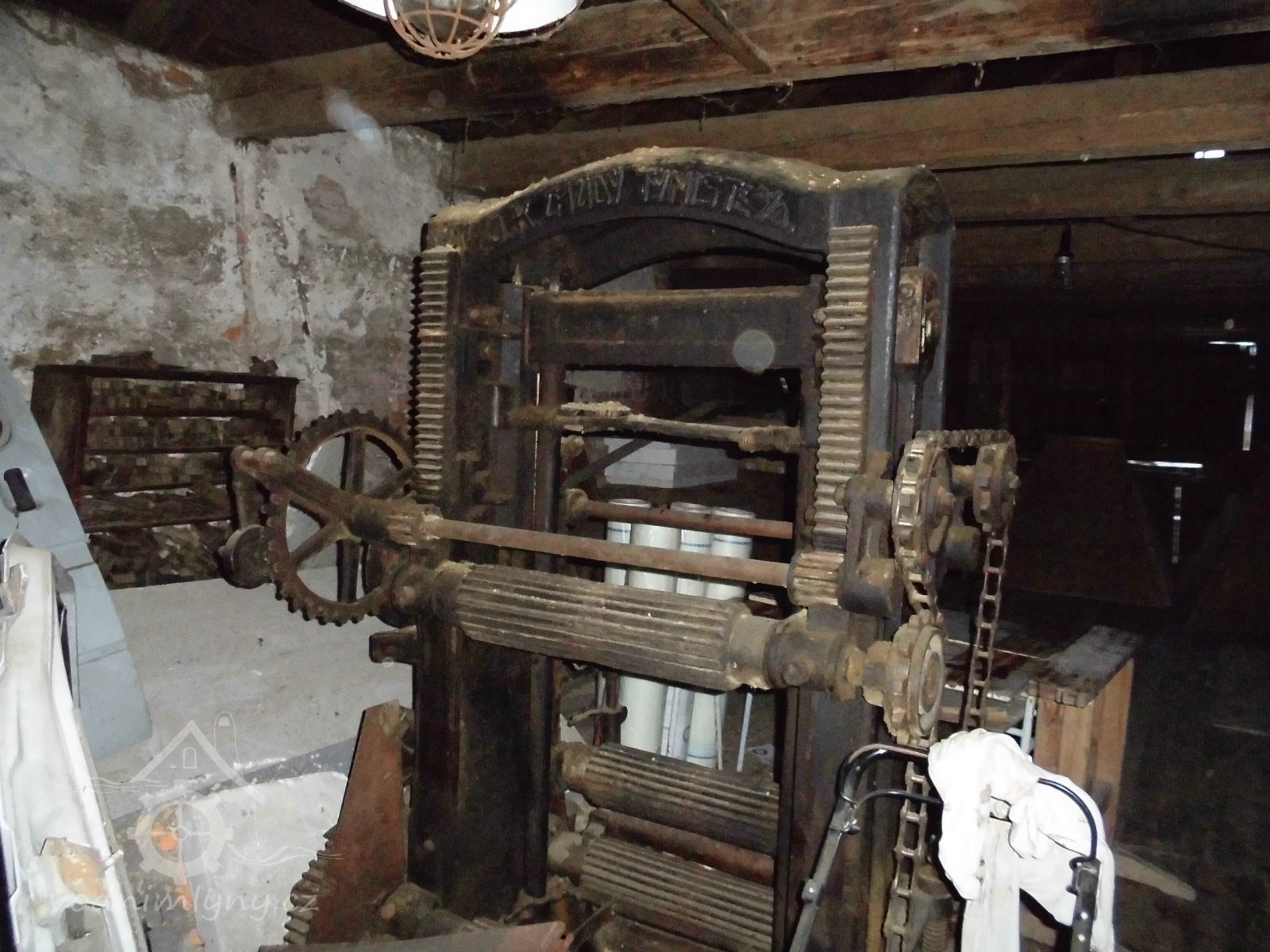 vyřazená válcová stolice v průchodu do pily, 2013, © Veselý, (Prvky na obrázku: válcová stolice)