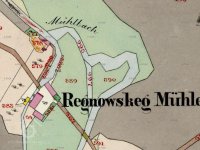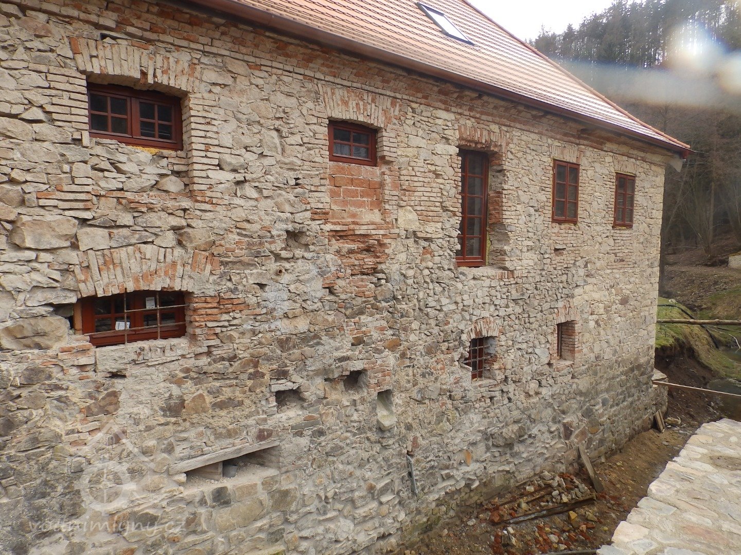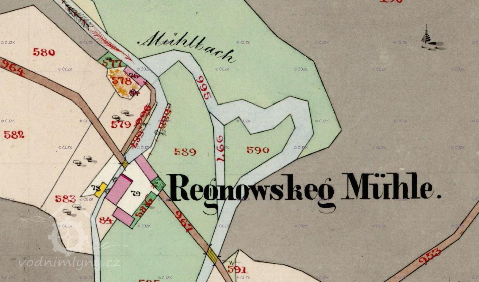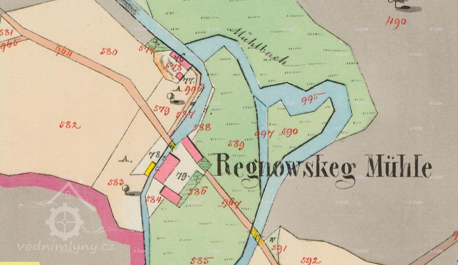 6) Všechny opravy, jež dosud z Jenečského důchodu na Rejnovský mlýn se podnikaly, nyní přestanou a kupující i jeho nástupci budou povinni budovu, jelikož nyní jeho vlastnictvím jest, udržovati v dobrém stavu, a kdyby vinou jeho nebo členů jeho - čehož Všemohoucí nedopouštěj - nedbalostí a neopatrností mlýn vyhořel, bude povinen týž na své útraty, aniž by mu činže prominuta byla, zase vystavěti. Naproti tomu ujišťujeme kupujícího tohoto mlýna, že bude-li kdy potřebovati nějakého žernovu nebo hřídele nebo dříví ku opravě mlýna, mu je proti zaplacení dopřejeme a svými robotníky zdarma dopraviti dáme.