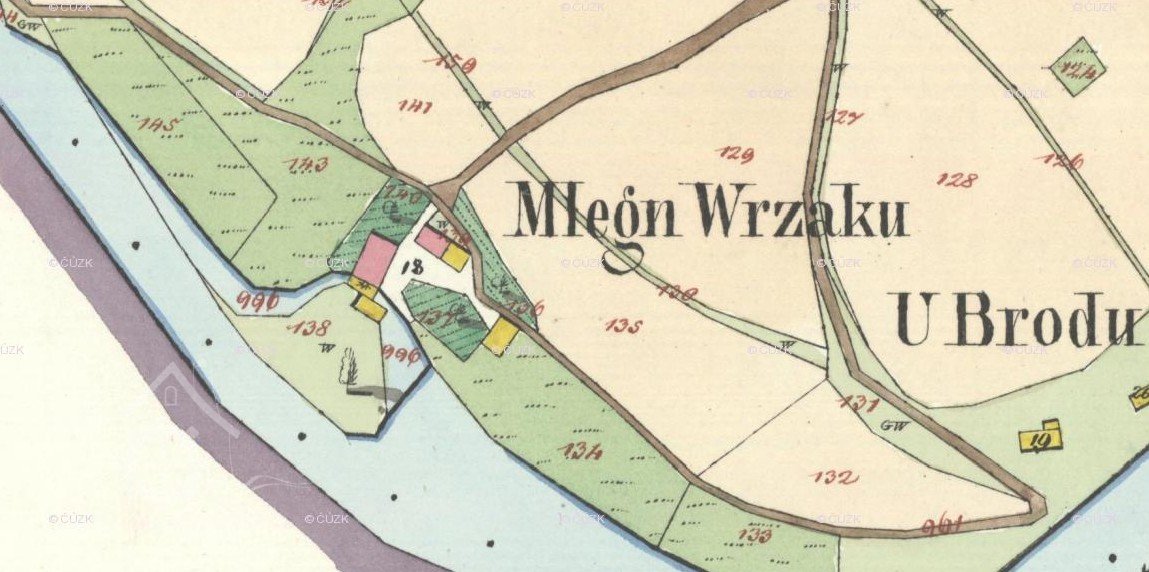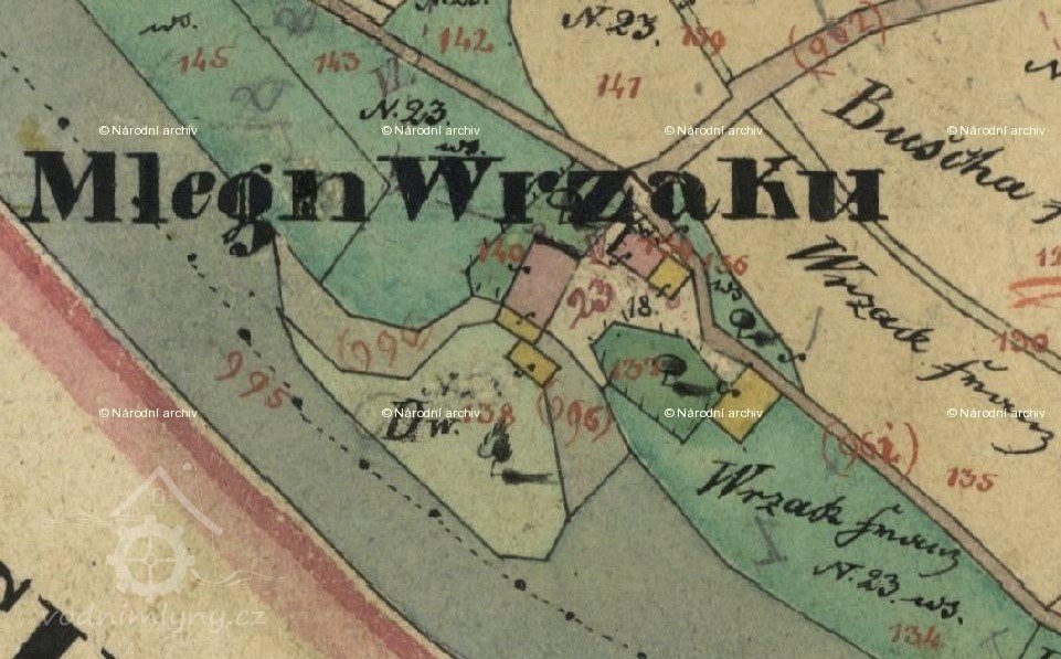 V r. 1838 vlastnil mlýn Franz Wrzak, v r. 1930 František Vrzák. Původní č. p. bylo 23.