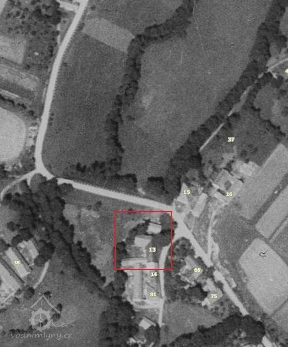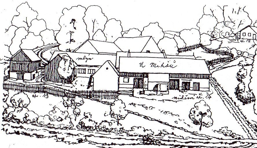 mlýn rozdělen na čp. 13 (mlýn a pila), čp. 14 (Mikšova hospoda) a čp. 37 (malý domek, kde přespávali čekající mleči)