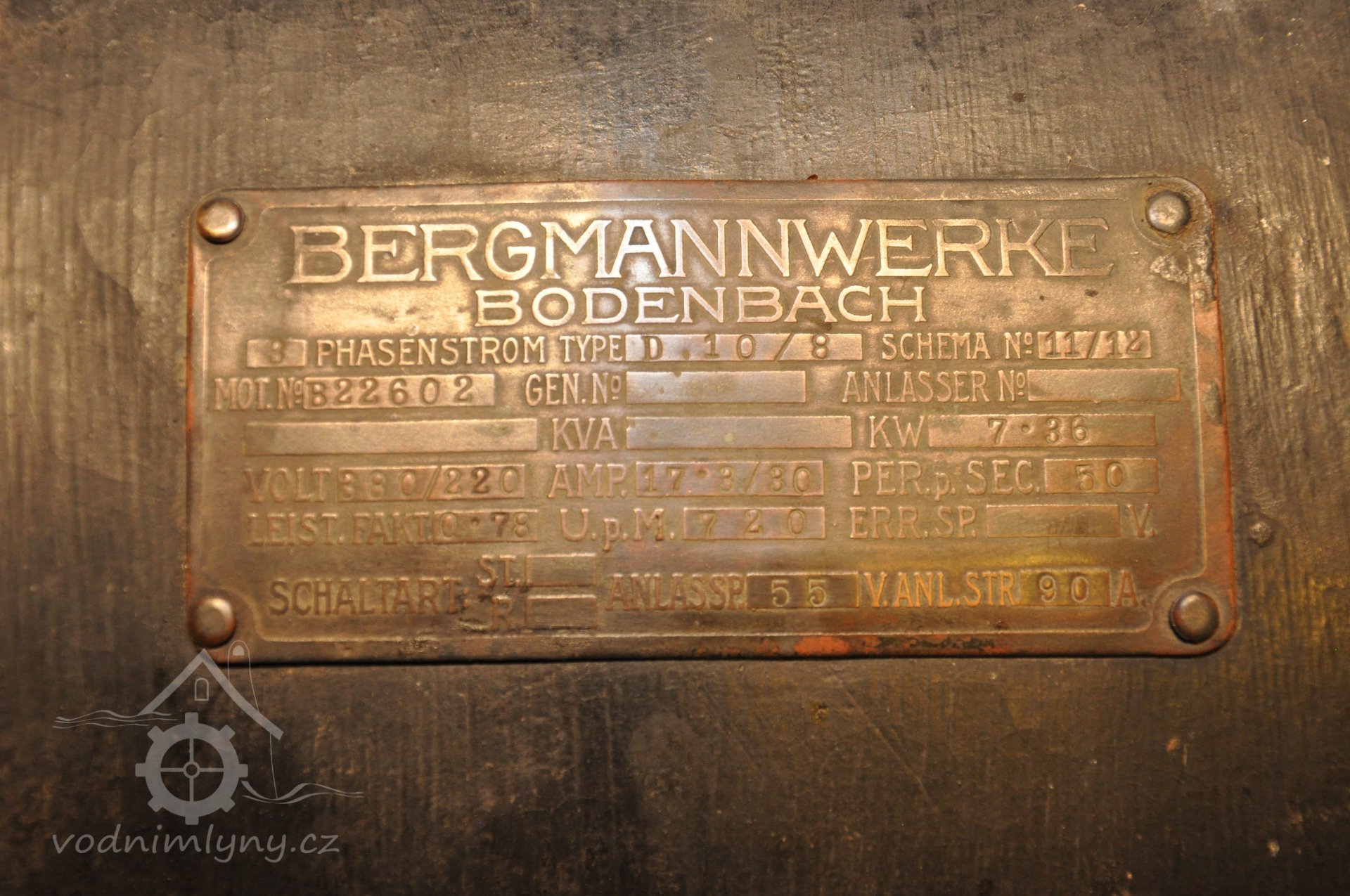PopisElektrický motor vypomáhal v době nedostatku vody. V současné době slouží k pohonu mlýna pro muzejní účely a je součástí expozice historických strojů