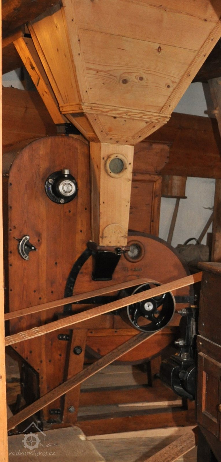 • > Mlýn v 1. čtvrtině 20. století modernizován na válcový strojní, byla zakoupena již starší válcová stolice, jenž nahradila původní mlecí kameny, dále pak loupačka a ostatní mlýnské stroje. Přestavěna byla i pila - osazena katrem místo tzv. jednušky.
