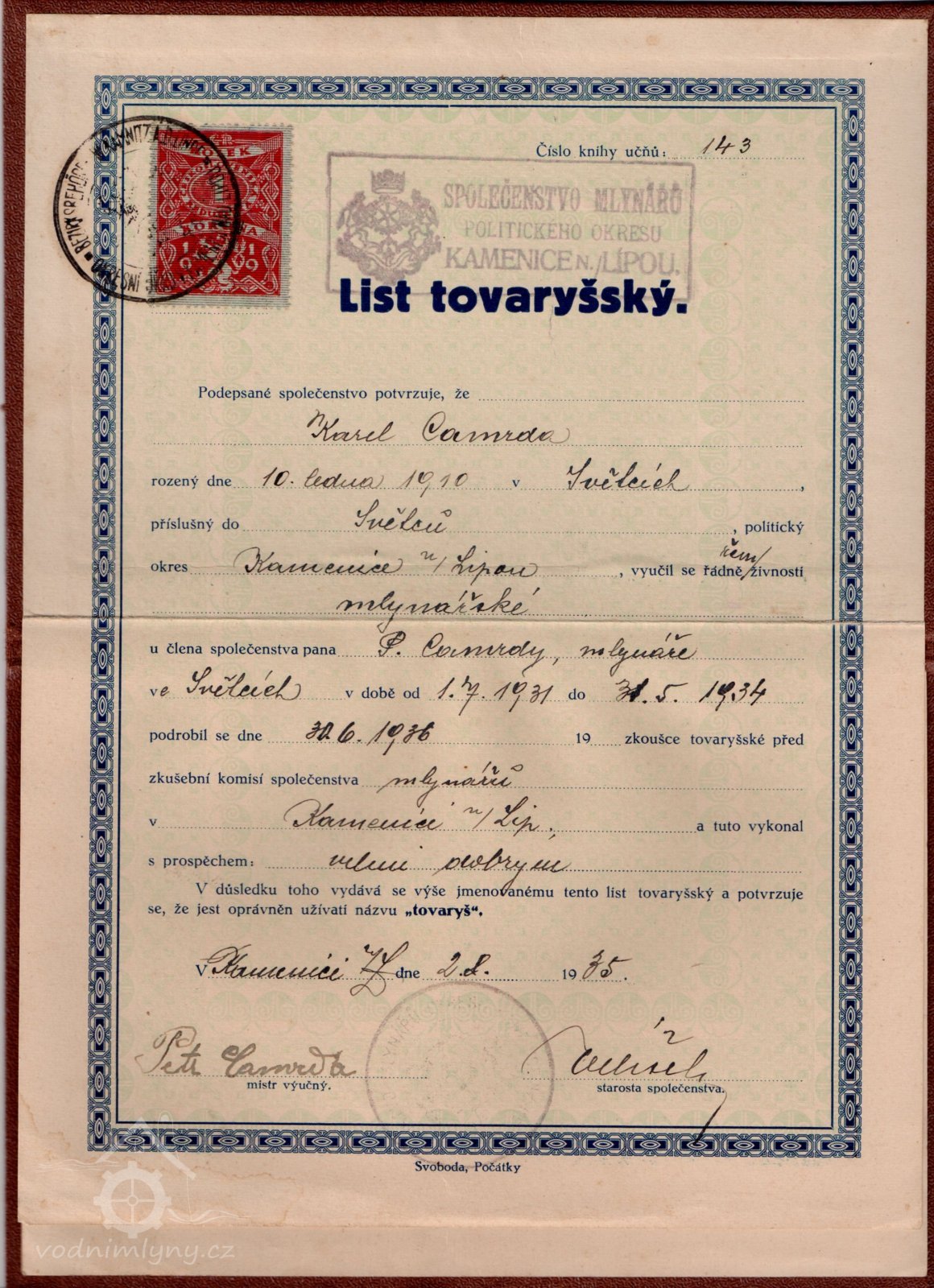 - Petr Camrda, mlynář a pilař, *1867 ve Světcích, mlýn koupil r. 1906