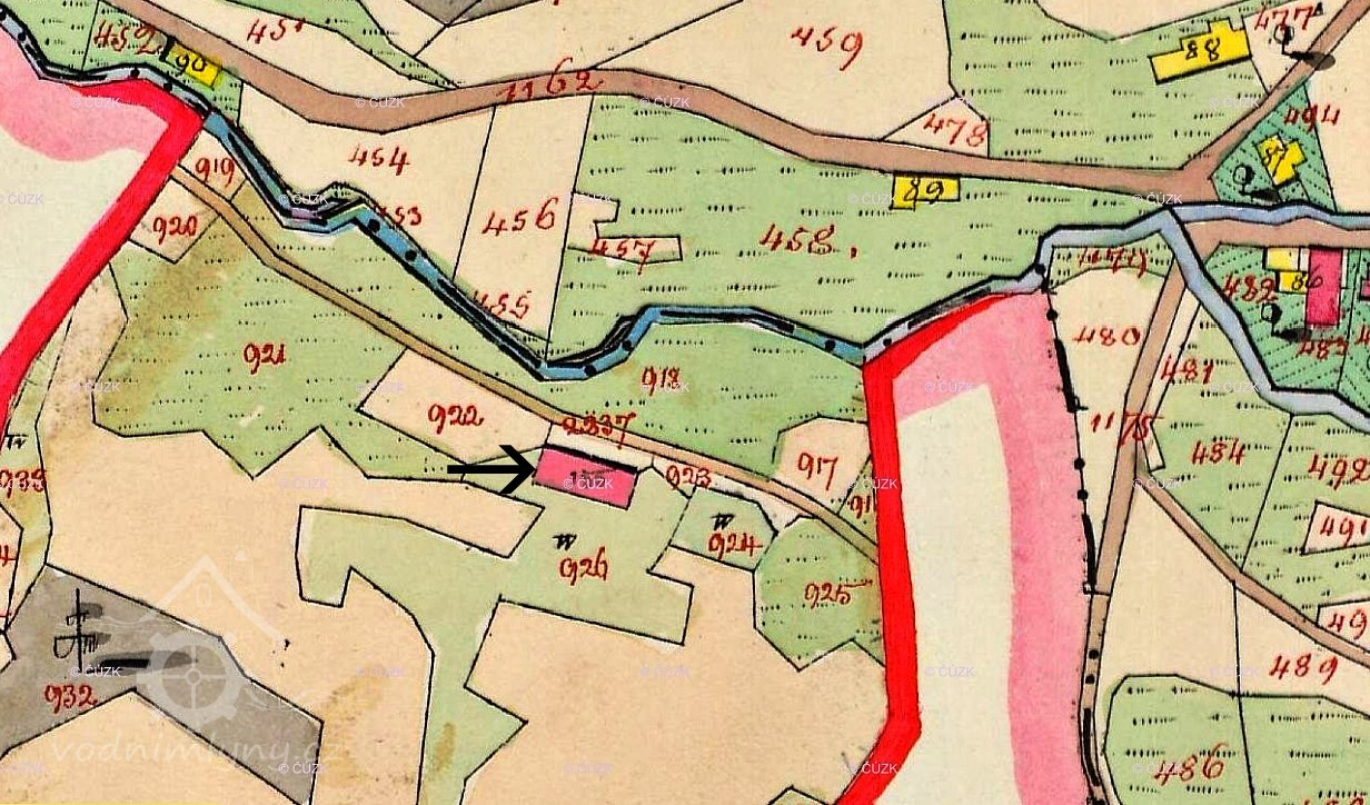 Mlýn není na stabilním katastru zakreslen, vznikl později.
