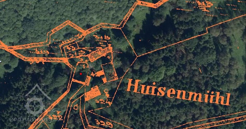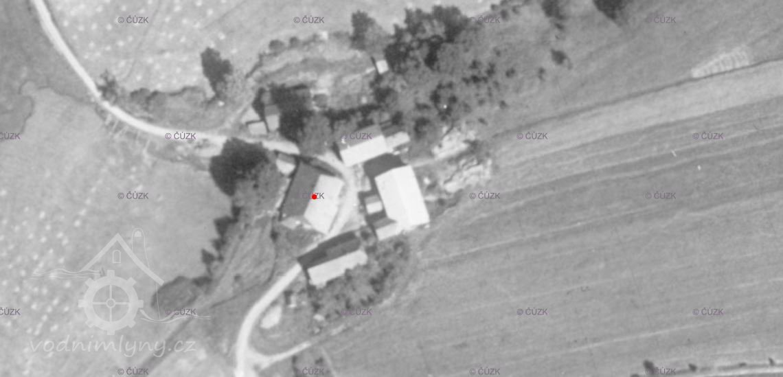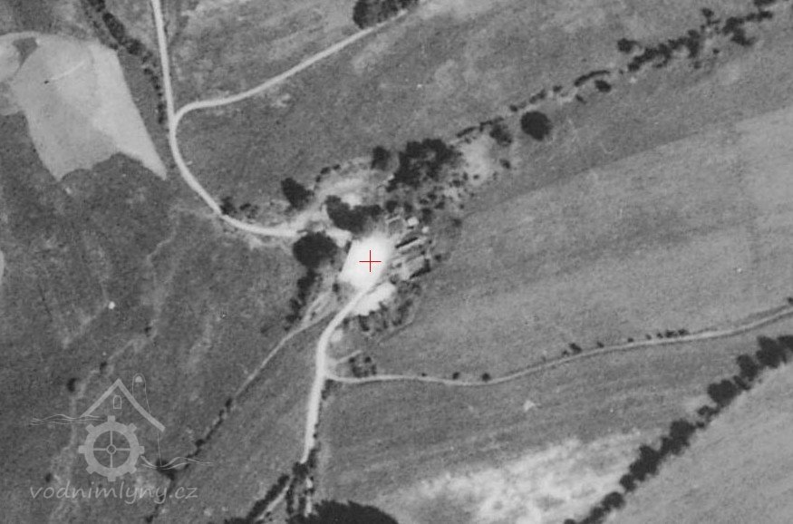 Ruiny mlýna na letecké mapě, 1949, © http://kontaminace.cenia.cz/