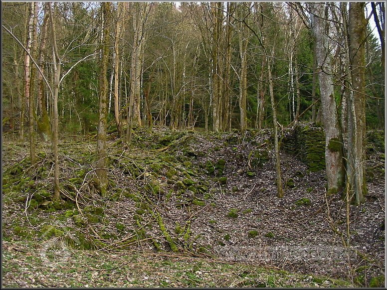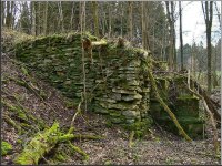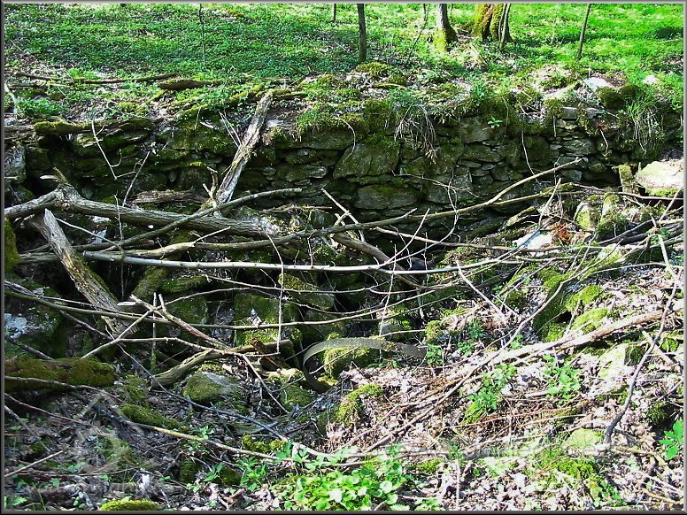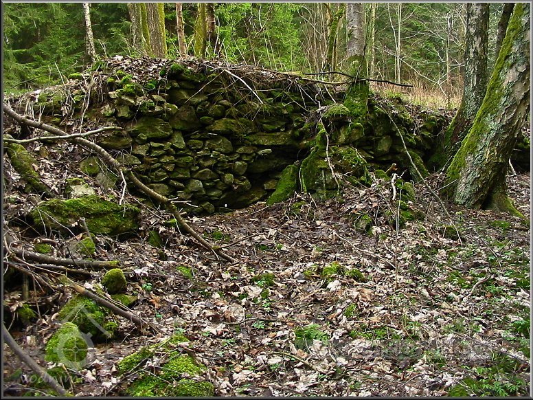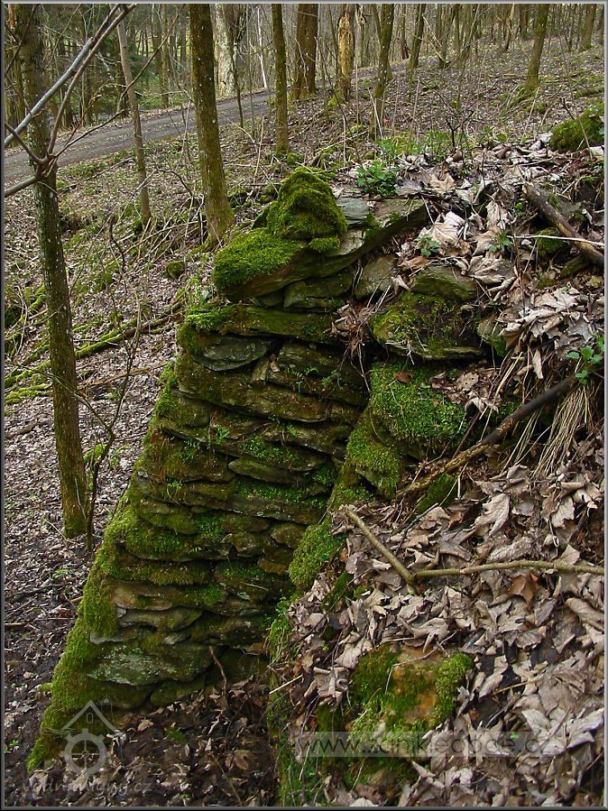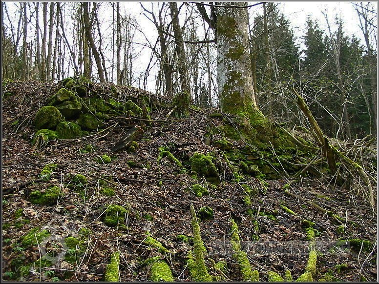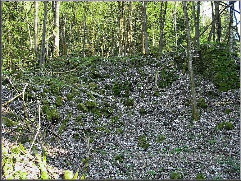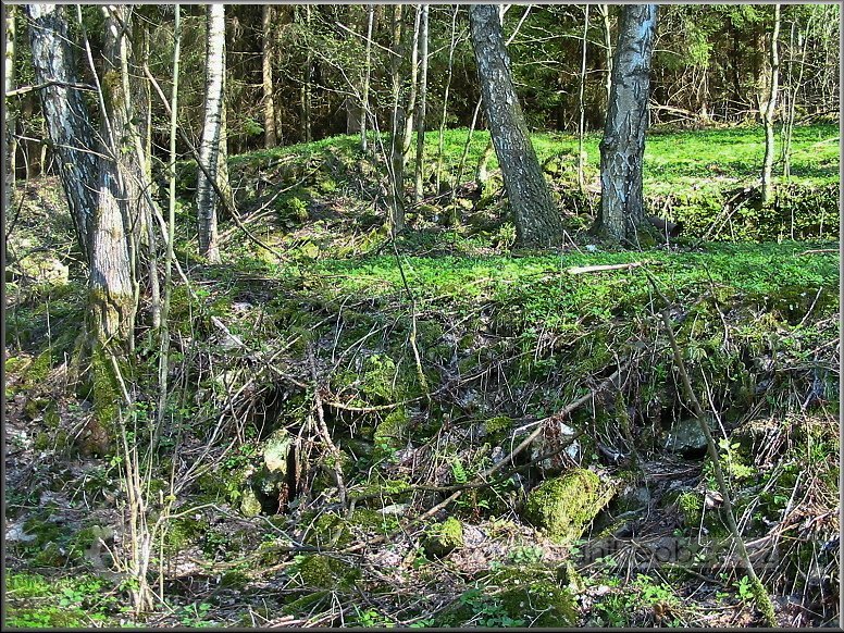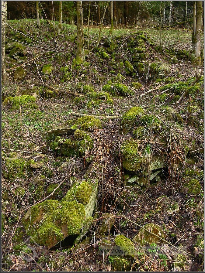 Pozůstatky hlavní mlýnské budovy pod zatáčkou cesty od Zadních Chalup ke Sv. Kateřině, 04 2011, © Petr Bílek