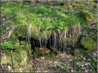 Sklep s pozůstatkami základů pod ruinami předešlého stavení nad mlýnem, 04 2011, © Petr Bílek