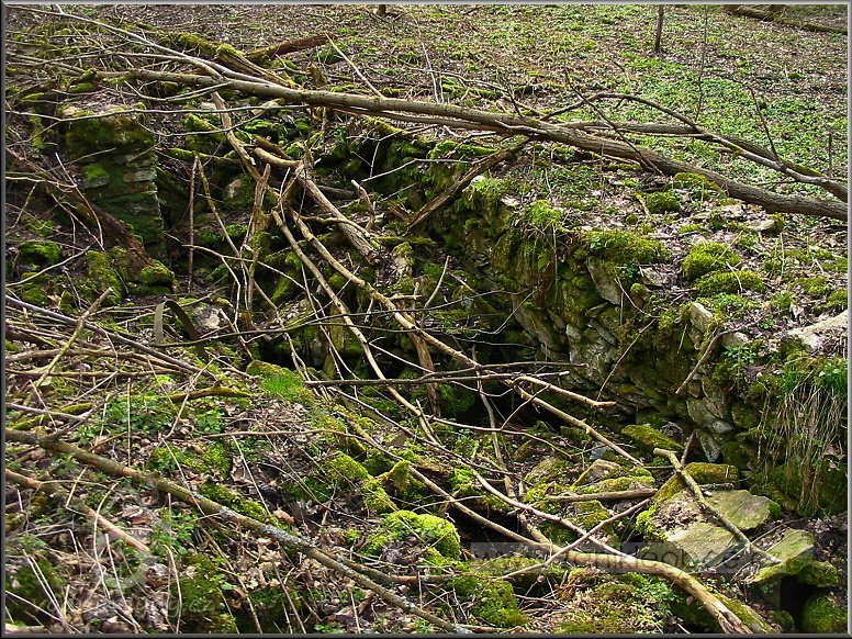 Pohled na druhé výrazné ruiny po stavení nad mlýnem v zatáčce po pravé straně ve směru od Sv. Kateřiny, 04 2011, © Petr Bílek