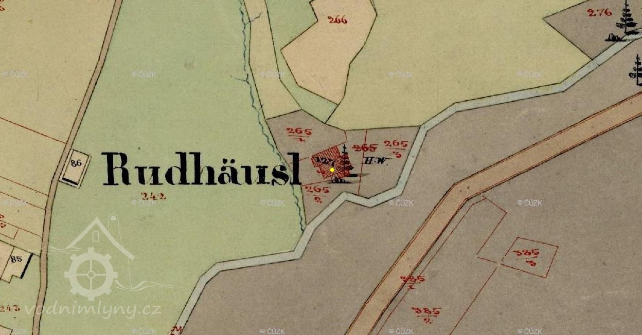 Mlýn je poprvé zakreslen na indikační skice z roku 1878, na skice z roku 1837 ještě zakreslen není, vznikl tedy někdy po tomto roce.