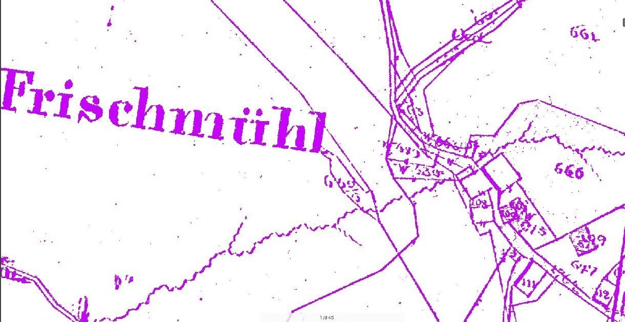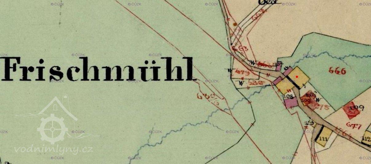 Mlýn patřil rodině Frisch již v době vzniku mapy Stabilního katastru/1837/.Poslední vlastník do r. 1945 :/1932-1945/Karl a Rosalia Frisch- každý jednou polovinou.