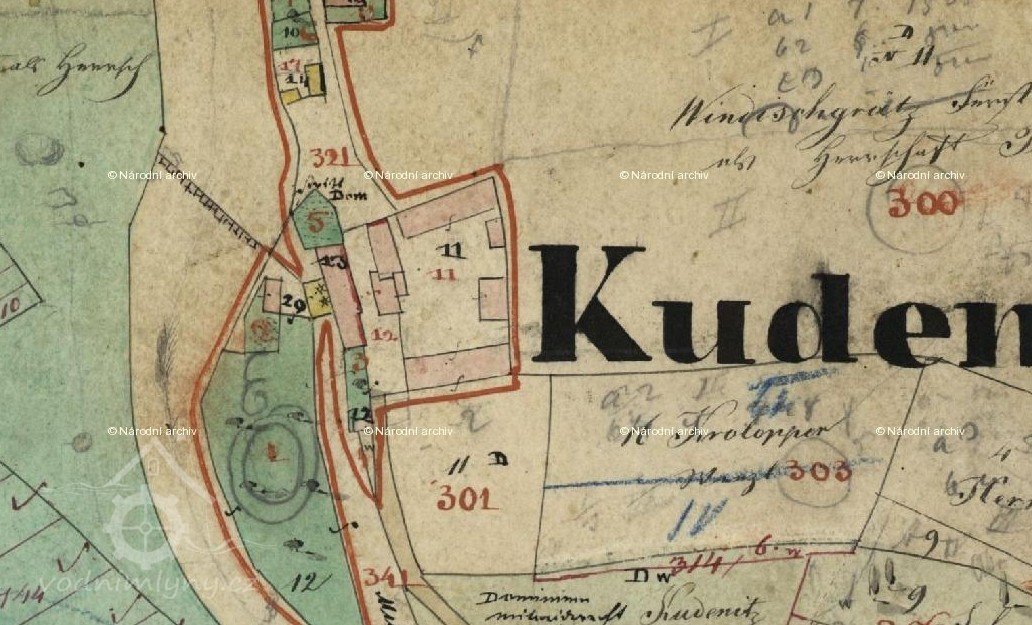 Vodní mlýn v Chotěnicích (Kudenitz) vznikl před polovinou 19. století, kdy je k roku 1843 doložen mlynář Altena.