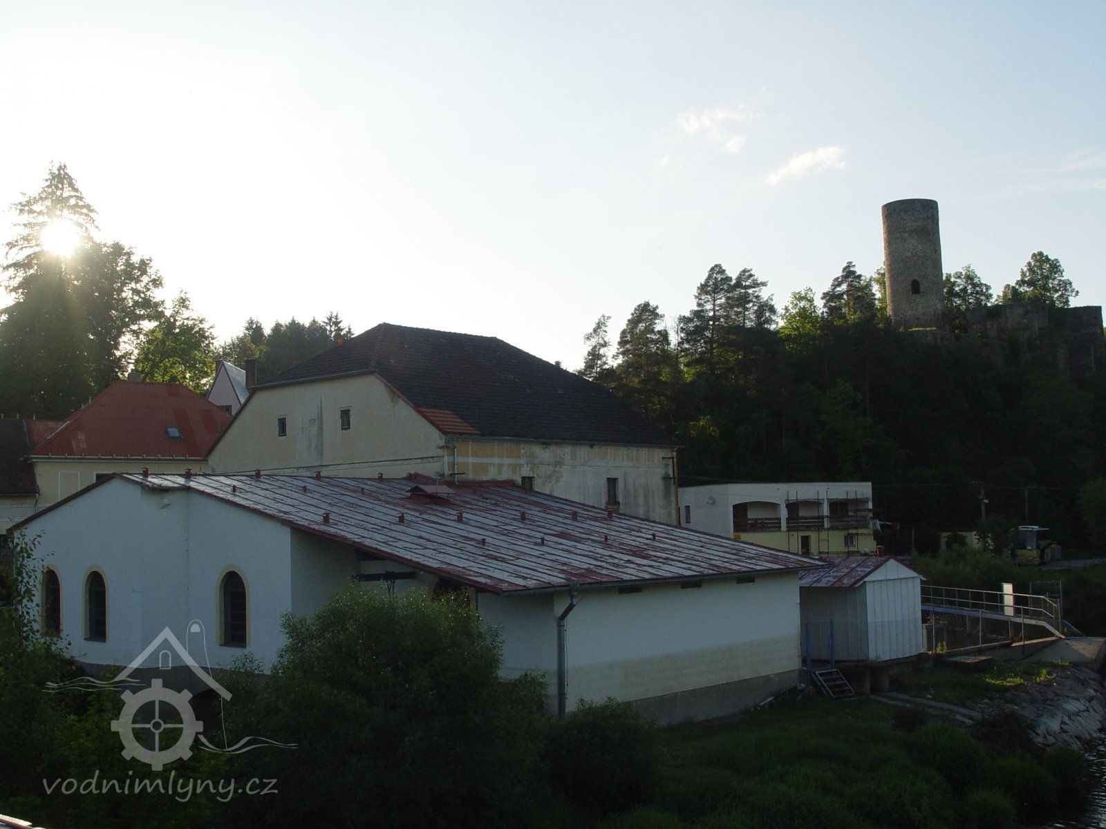 Mlýn s turbínou, který vyrábí elektřinu