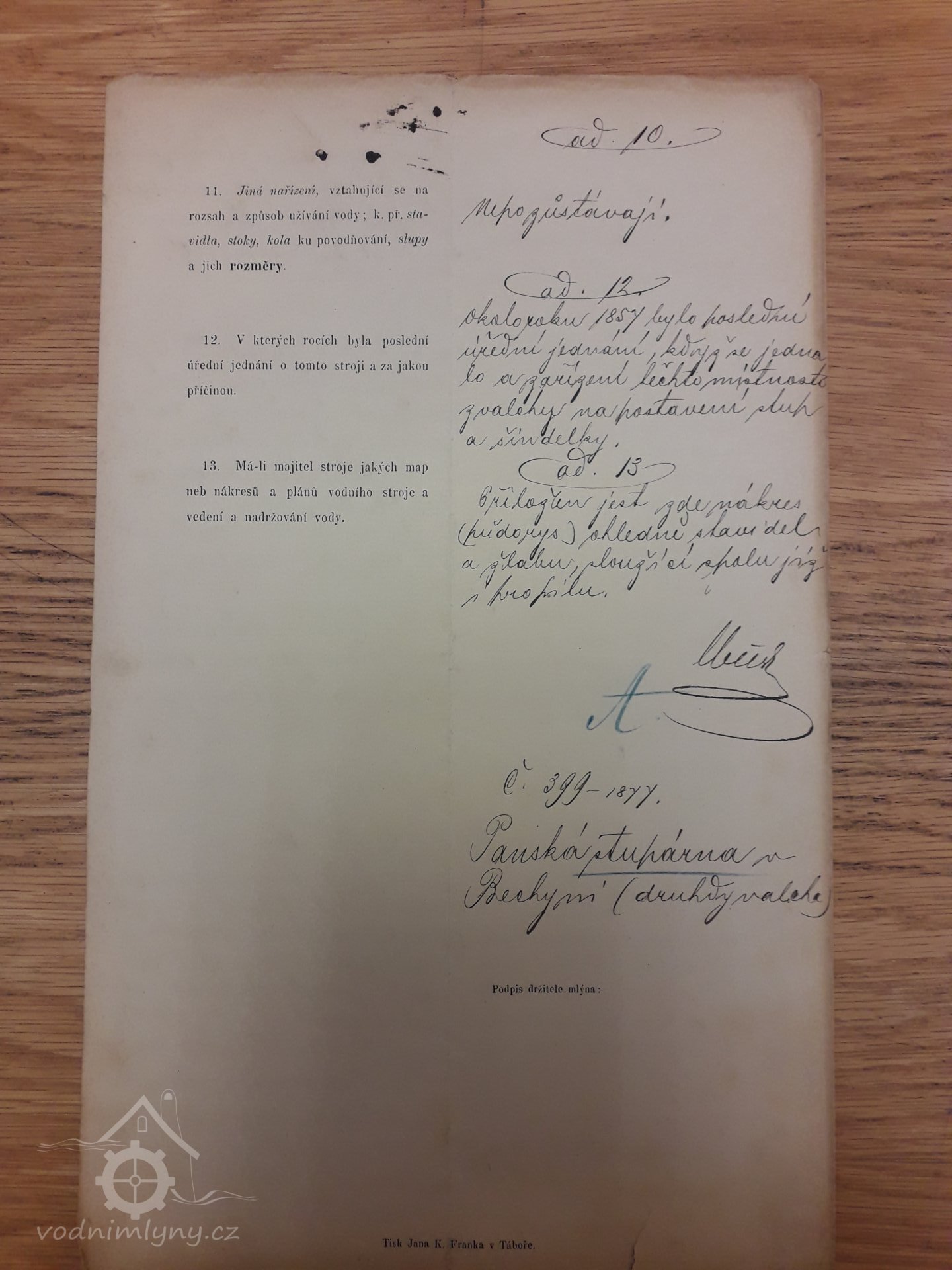 Mlýn vznikl až někdy po roce 1828. Není vyobrazen na historických katastrálních mapách. (RŠ)