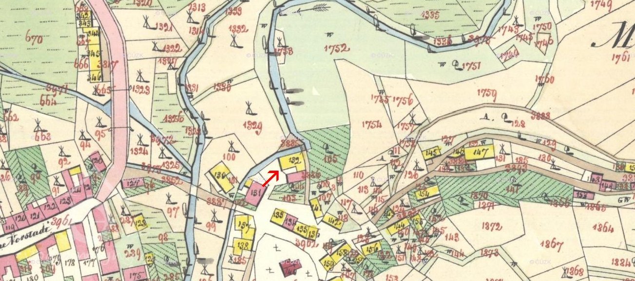 Majitel je správně, ale Franz, ne František Kunert a staří bude 19. století - resp. asi mnohem starší, v archivu jsme dohledali že tam kdysi byla dřevěná stavba a zřejmě každá generace něco posunula - až na nás. P. Košťál je určitě dobrý zdroj, o tom náhonu by mohl vědět víc....