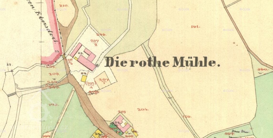 1930-1939 - Landwirtschaftliche Spiritusbrenerei und Mühle "Rote Mühle" - mlýn a lihovar (RR)