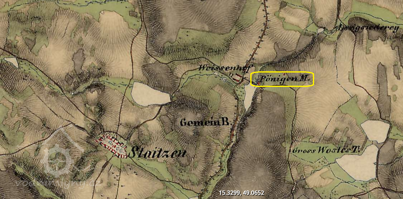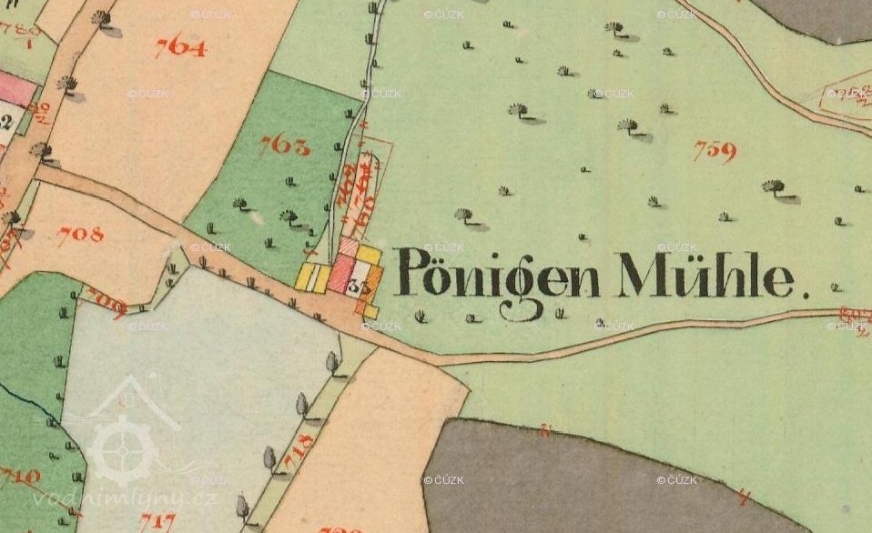 Mlýn může být totožný s Komárkovským mlýnem pod Stoječínem: