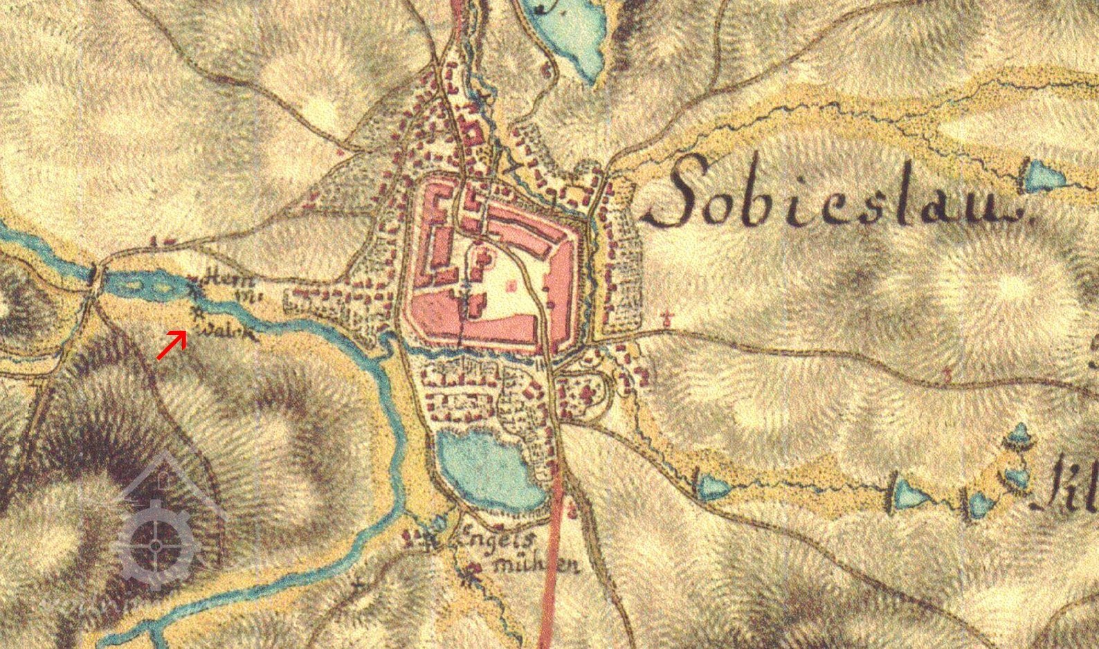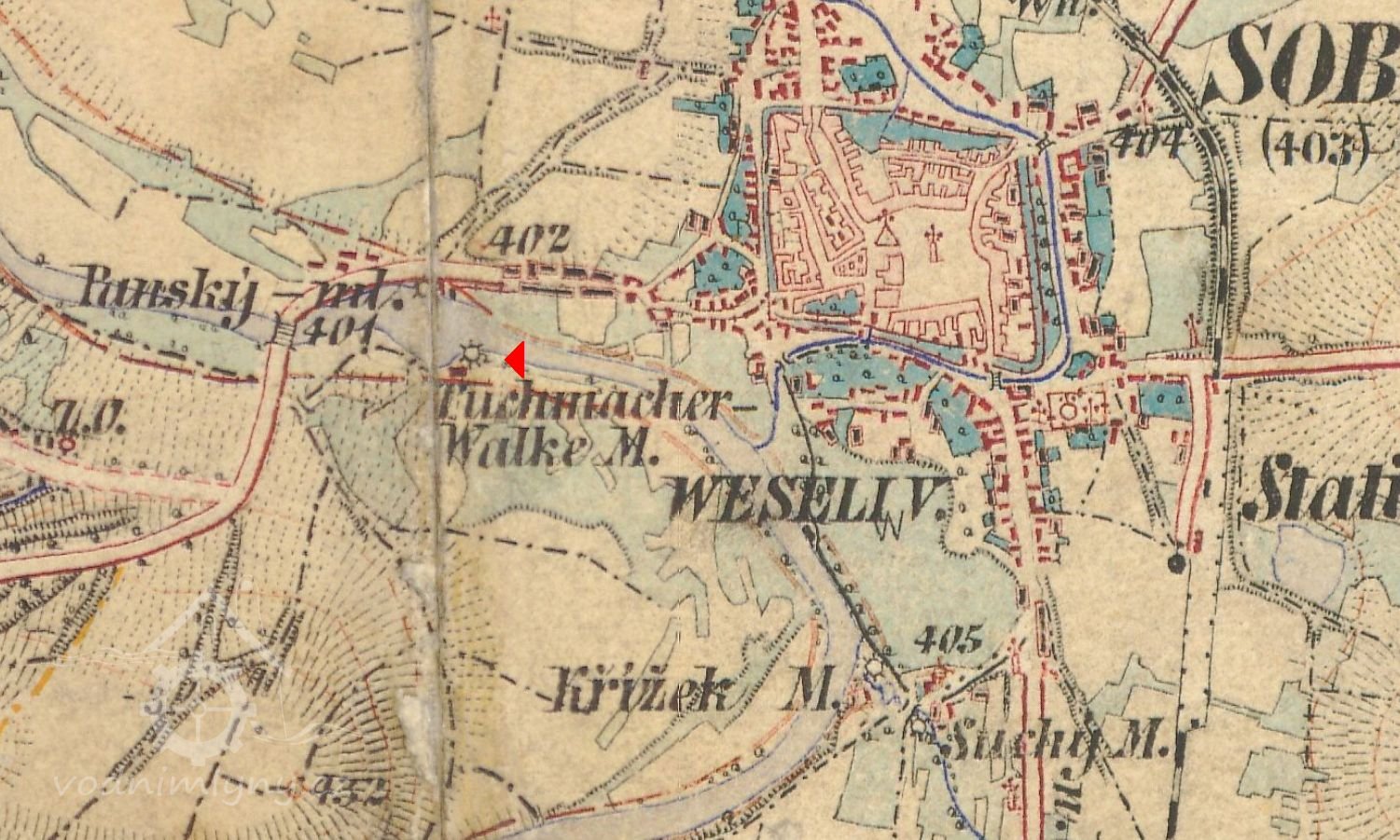Mlýn čp.67 v Soběslavi se nazývá na Valše soukenické. Držitelem Spolek soukenický v Soběslavi. S mlýnem sousedí na protějším břehu mlýn čp.66 Václava Suchomela, nahoře mlýn zvaný Čejnov patřící panu Steinochrovi, dole mlýn „Fabrika“ p. F. Špačkovi patřící. Vodní síla upotřebena ku hnaní strojů mlýnských a valch soukenických. Tři vodní kola, složení dvě, stoupy jedny a valcha. Šířka mlýnských žlabů obnáší 4 střevíce, níže až 5 střevíců. Šířka světlosti stavidla 3´ 8“, šířka vodních kol 4´ až 4´6“, průměr kamenů mlýnských 31“. Kola dřevěná dvouvěncová na spodní vodu. Vodní cejch z 2.10.1873 se nalézá při řece proti dveřím do mlýnského stavení. Voda teče z řeky stavidlem do žlabu a na všechna kola stejným tokem. Po upotřebení zpět do řeky. Poslední úřední jednání bylo v roce 1873 za příčinou stavby mlýna na valše. Kupní smlouva od 30.9.1797, protokol o položení normálního cejchu 2.10.1873... Dokument podepsal za Spolek soukenický Antonín Preininger