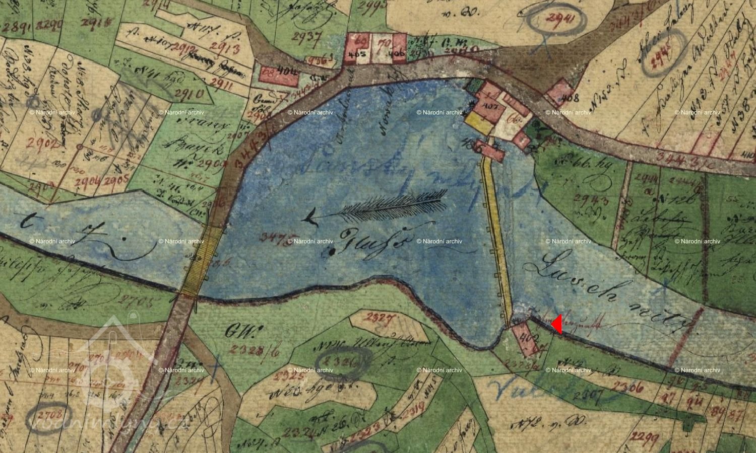 Náčrt k postavení stavení a mlýna z r.1873