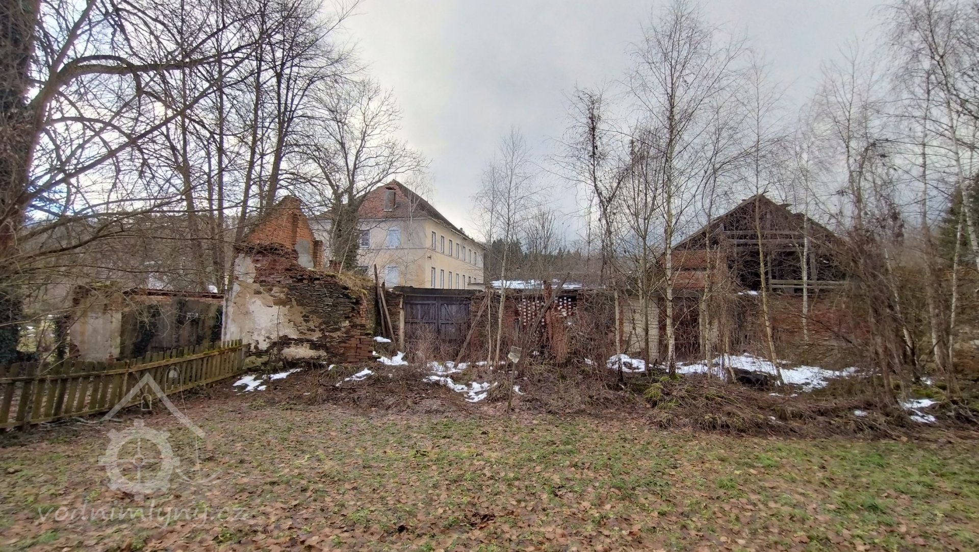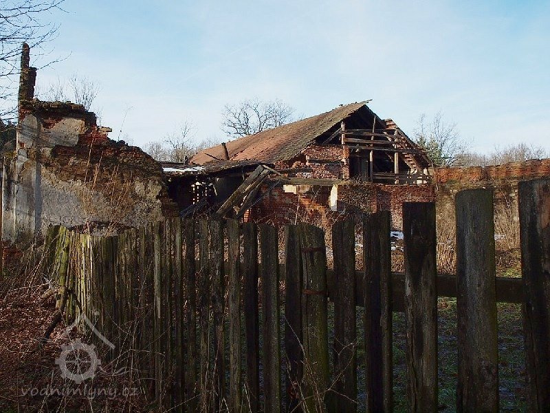 v hospodářských budovách ustájen mladý dobytek, elektrárna zrušena, turbína vážně poškozena, částečně i s náhonem zasypána