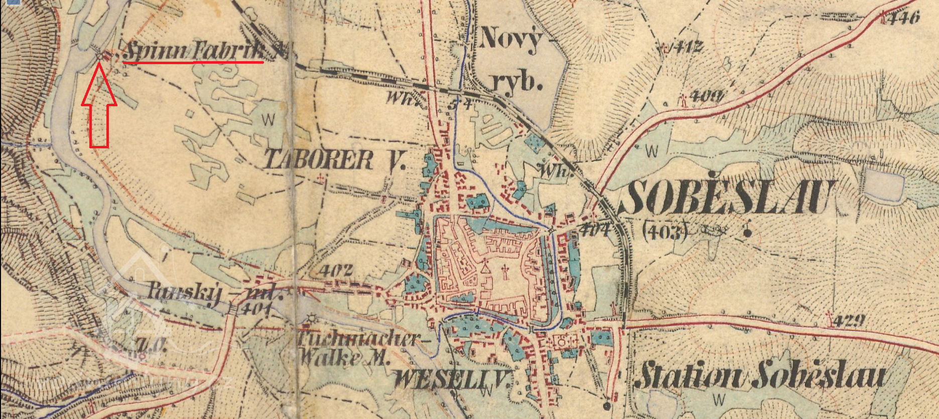 Mlýn severozápadně od Soběslavi původně sloužil jako textilní továrna, přádelna, byl přestavěn na vodní mlýn. Později, kolem roku 1906 mlýnu přibyla i elektrárenská funkce.