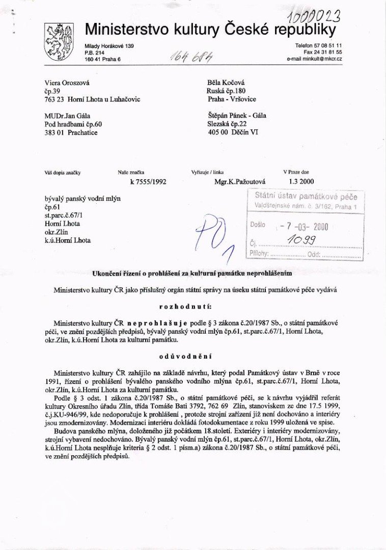 Historie mlýna také obsahuje: