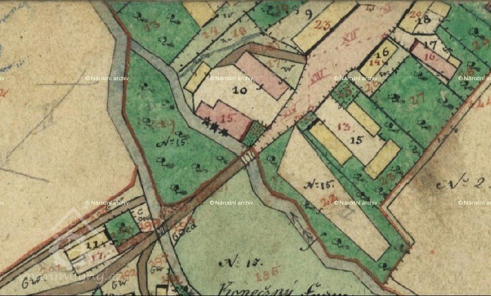 1654 Berní rula: Jan Rejmont, zahradník, má svůj mlejn o 1 kole, 4 str. rolí, 2 potahy, 7 ks hov. dobytka