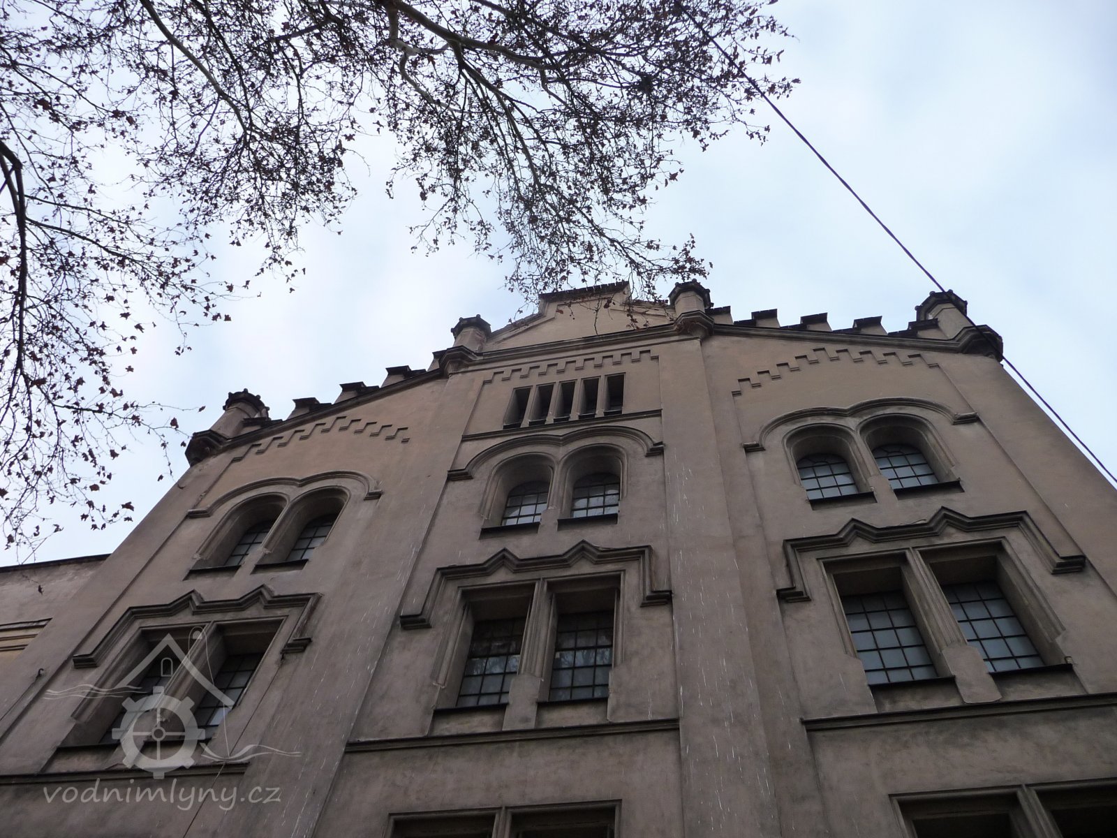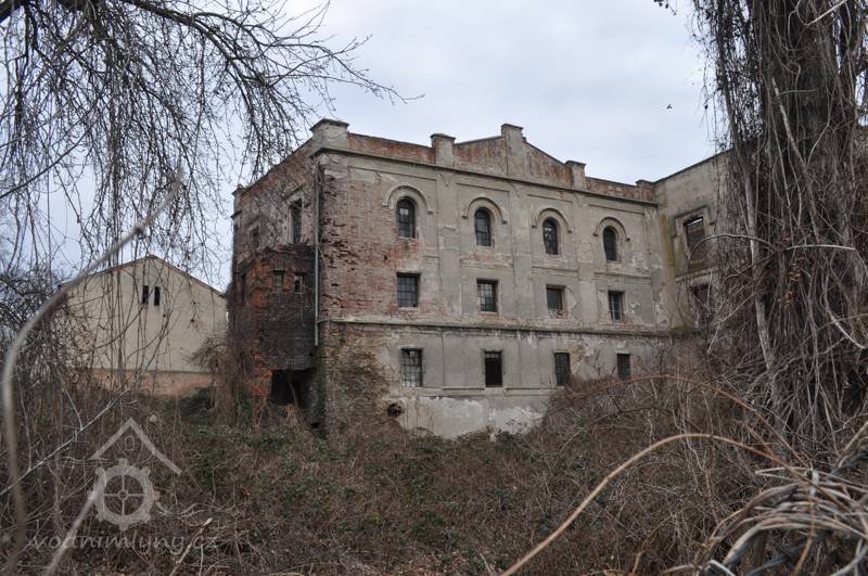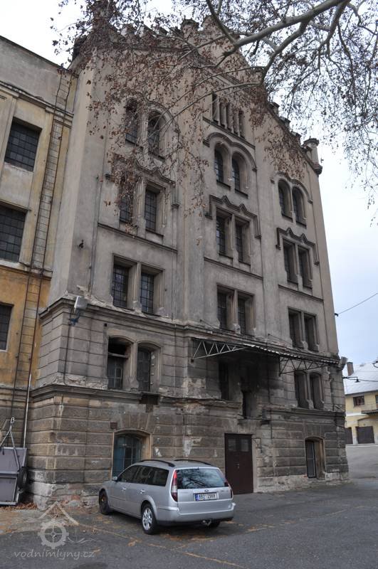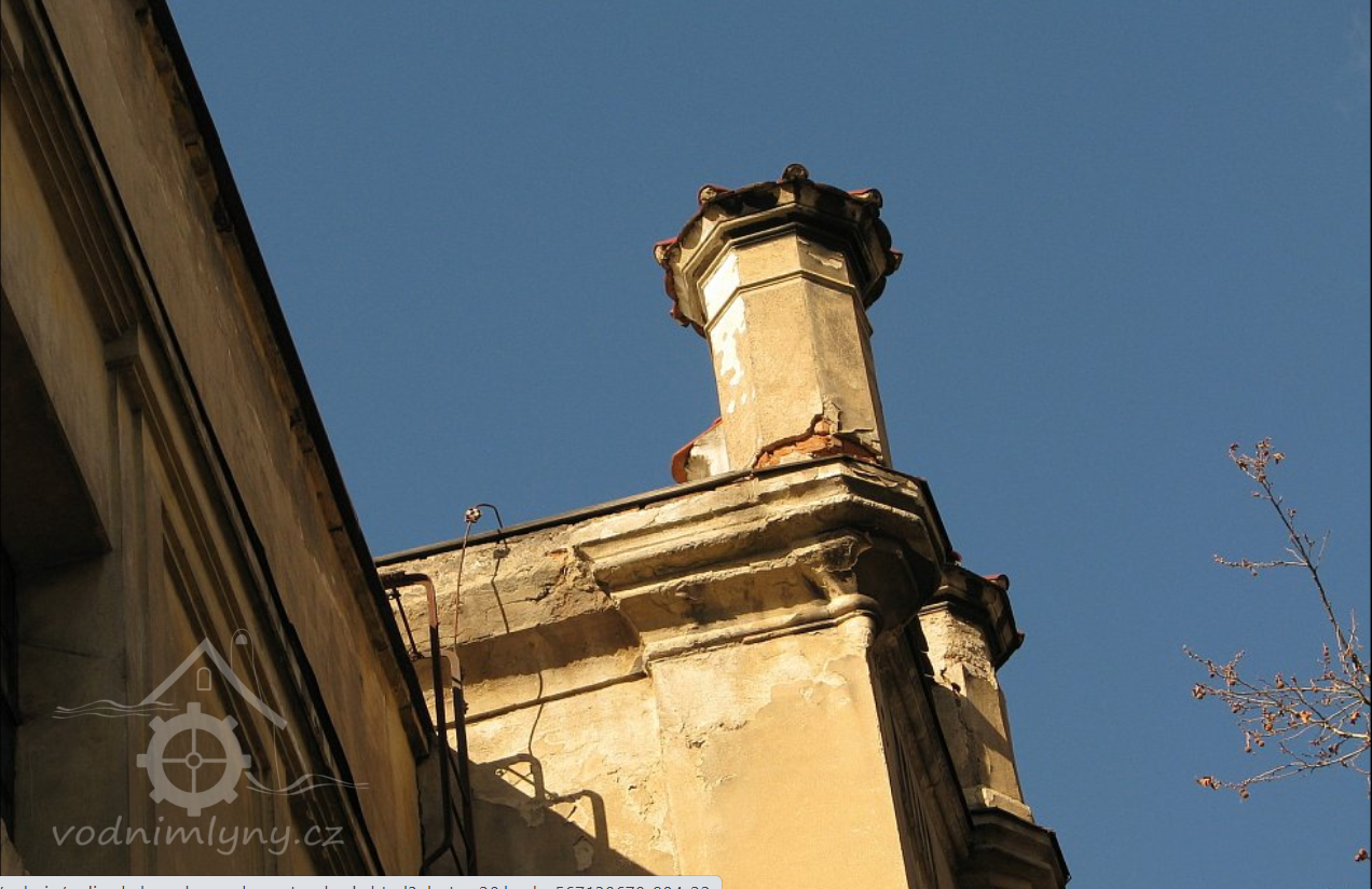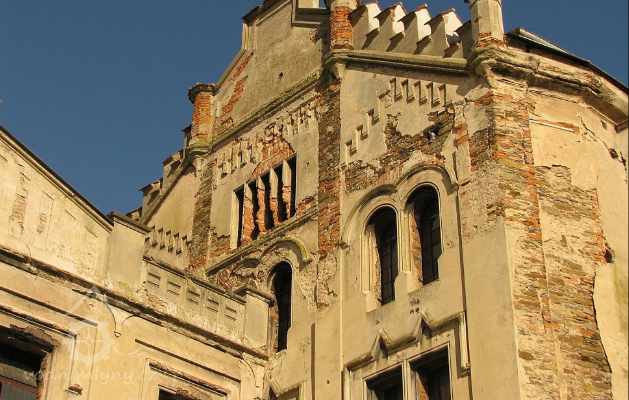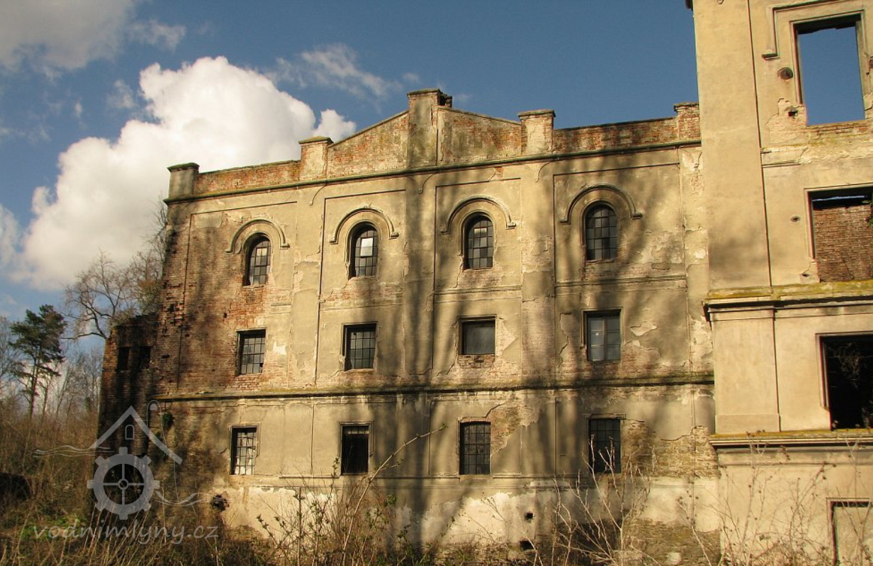 Pohled na mlýn, 02 2019, © Ivan Minář, (Prvky na obrázku: okno, plastická omítková výzdoba fasád a štítů)