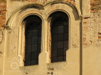 Objekt mlýna od Labe, 2014, © Helena Špůrová, (Prvky na obrázku: okno, plastická omítková výzdoba fasád a štítů, zdobený zděný štít)