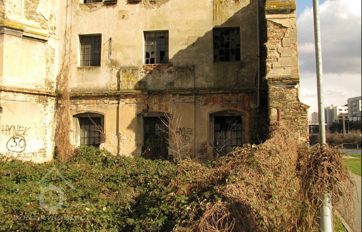 Podskalský mlýn (vpravo) a Formánkovský mlýn (vlevo) z mostu, 2014, © Helena Špůrová