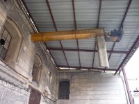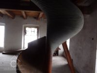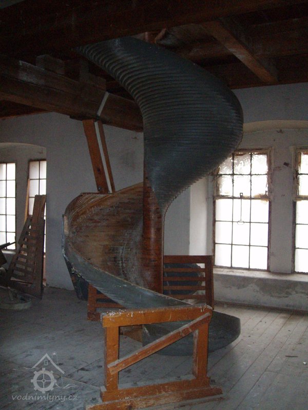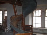 Spirálový dopravník na pytle z vyšších pater do přízemí, 2014, © Helena Špůrová, (Prvky na obrázku: výtahy a dopravníky)