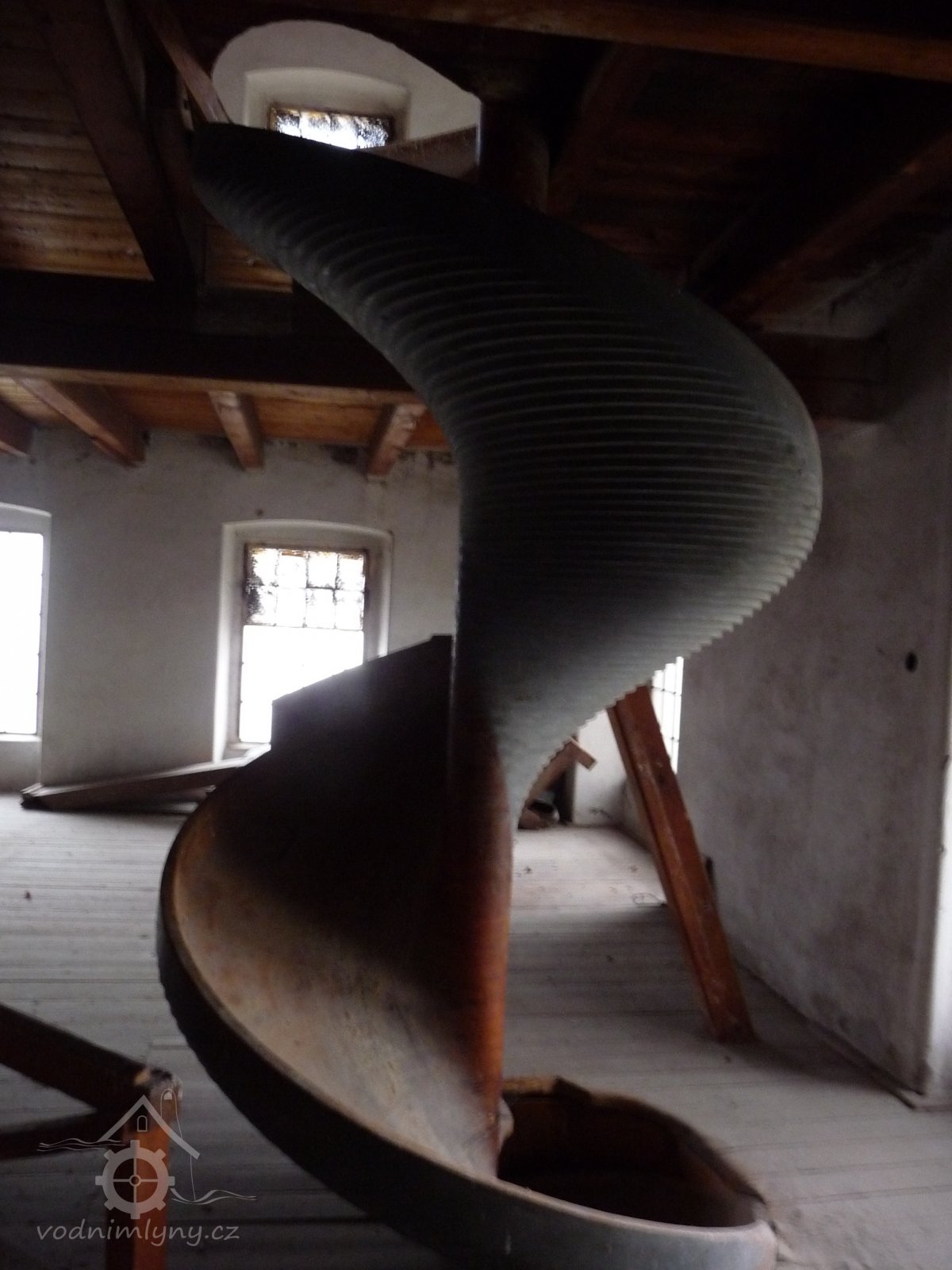 Zařízení při vstupu do mlýnice - šnekový dopravník, 2014, © Helena Špůrová, (Prvky na obrázku: výtahy a dopravníky)